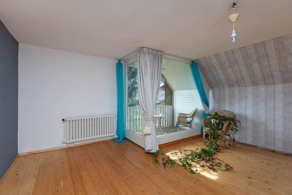 Via de voormalige deel is het mogelijk om boven het linker gedeelte van het woonhuis op de verdieping te komen. Deze ruimte is voorzien van een onbeschoten kap en is niet in gebruik als woonruimte.