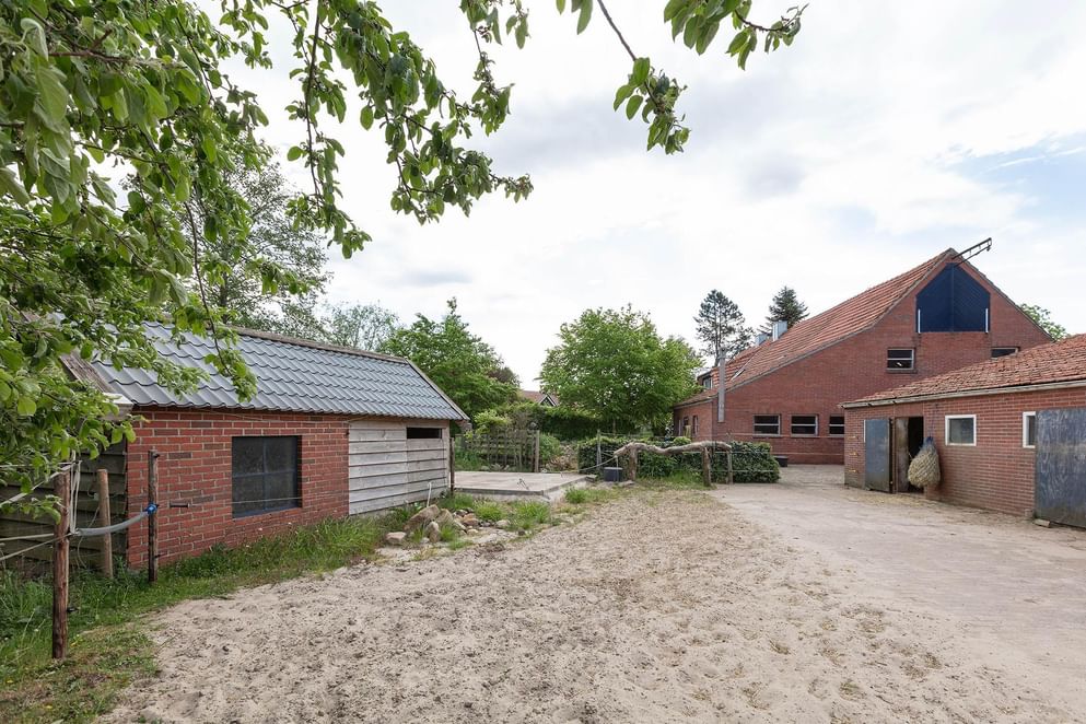 Naast het ruime woonhuis welke zich leent voor dubbele bewoning, is op het erf aanwezig een stal waar nu 2 paardenboxen in gevestigd zijn, aangrenzend is er een ruime garage welke thans dienst doet als opslagruimte. Tevens bevinden zich op het erf 2 (deels) houten schuren. Het object is door zijn volumineuze inhoud, hoeveelheid grond en de diverse opstallen zeer geschikt voor het houden van paarden, (klein)vee of huisvesting van een kleine ondernemer maar ook dubbele bewoning behoort hier tot de mogelijkheden.