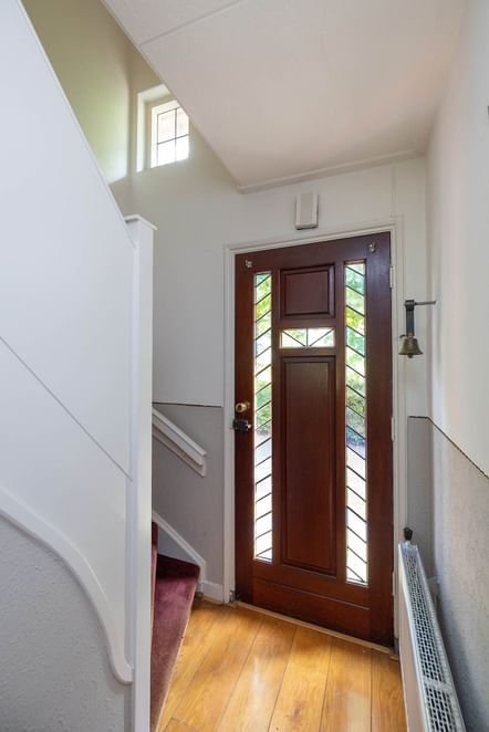 Bij binnenkomst stap je in de entree, waar je toegang hebt tot een extra kamer op de begane grond – perfect als slaapkamer of thuiskantoor. Ook vind je hier de trap naar boven, een handige trapkast en de doorgang naar de woonkamer.