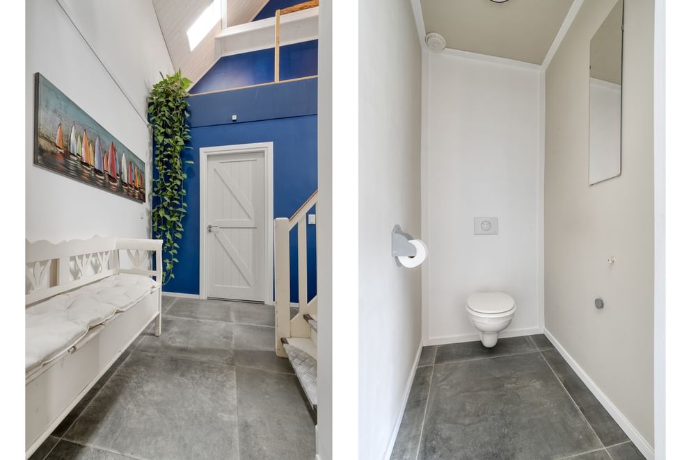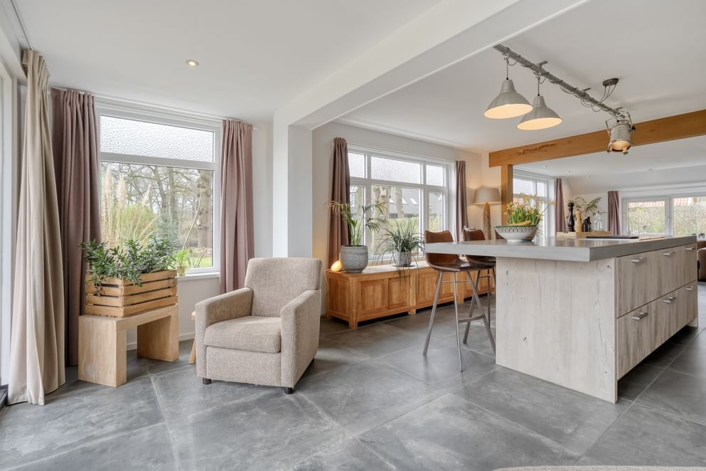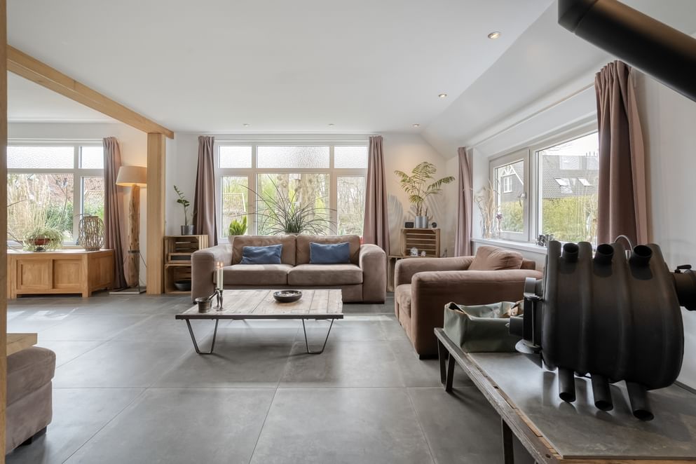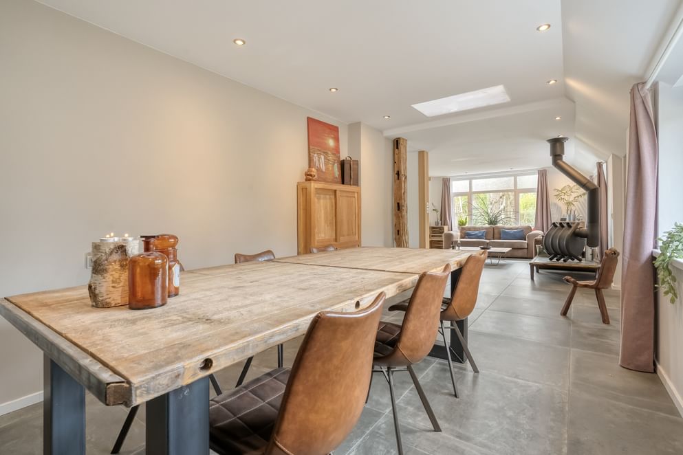 De gehele begane grond is voorzien van vloerverwarming en beschikt over een royale en sfeervolle leefruimte. De woonkamer en eetkamer lopen naadloos over in de open keuken met kookeiland en diverse inbouwapparatuur. De houtkachel vormt hier een warme blikvanger. Vanuit de hal zijn tevens een kantoorruimte met eigen toilet en een praktische voorraadruimte bereikbaar, ideaal voor werken of een eigen bedrijf aan huis. De voormalige deel biedt extra ruimte en mogelijkheden en is voorzien van aansluitingen voor water en elektra. Op de eerste verdieping zorgt de speelse indeling met imposante vide voor een ruimtelijk gevoel. Hier bevinden zich drie nette slaapkamers en een luxe badkamer uit 2021. De woning is goed geïsoleerd en voorzien van onder andere HR++ glas, kunststof kozijnen, dak- en gevelisolatie en 21 zonnepanelen.