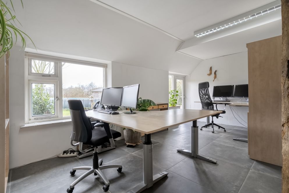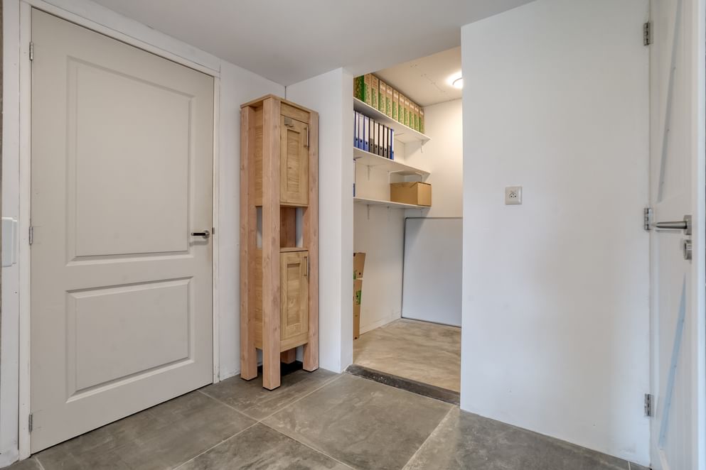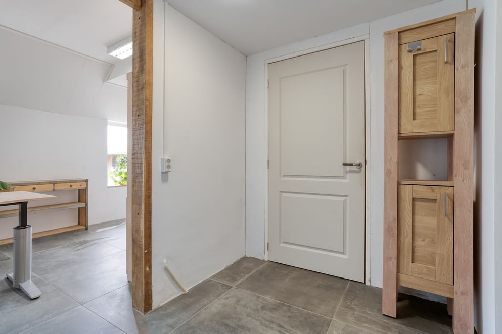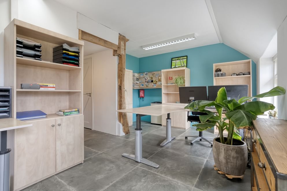 De woonboerderij is op meerdere manieren te betreden. Zo bevindt zich aan de voorzijde een entree waarbij je de woning via het karakteristieke deel binnenkomt. Daarnaast is er een toegang via openslaande deuren aan de linkerzijde van de woonboerderij. Vanuit de deel bereik je de hal. Aan de linkerzijde van de hal bevindt zich een kantoorruimte met een eigen toilet en een praktische voorraadruimte. Tevens vind je hier de trapopgang naar de eerste verdieping, een extra separaat toilet en de toegang tot het leefgedeelte.