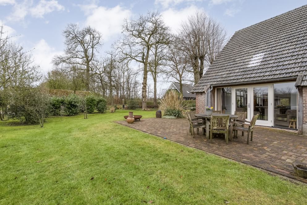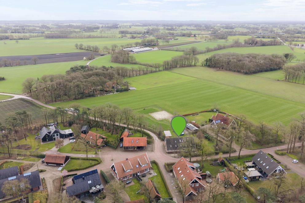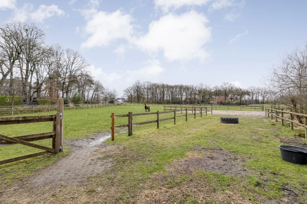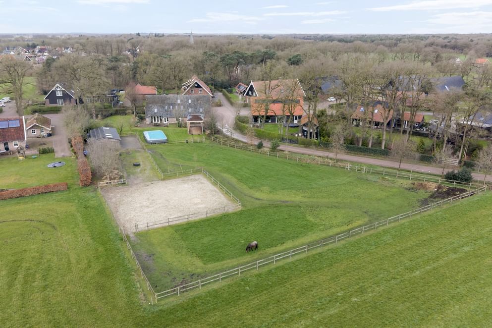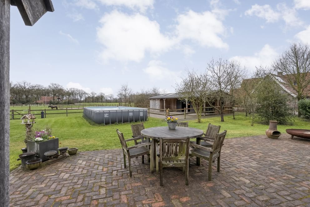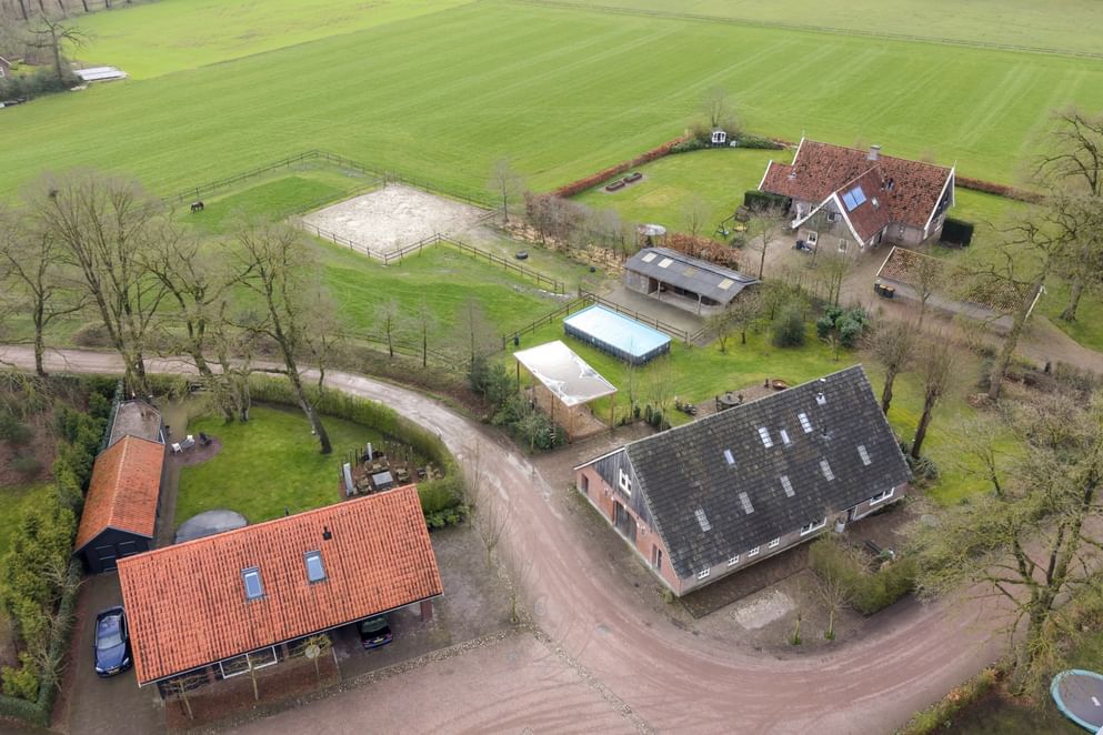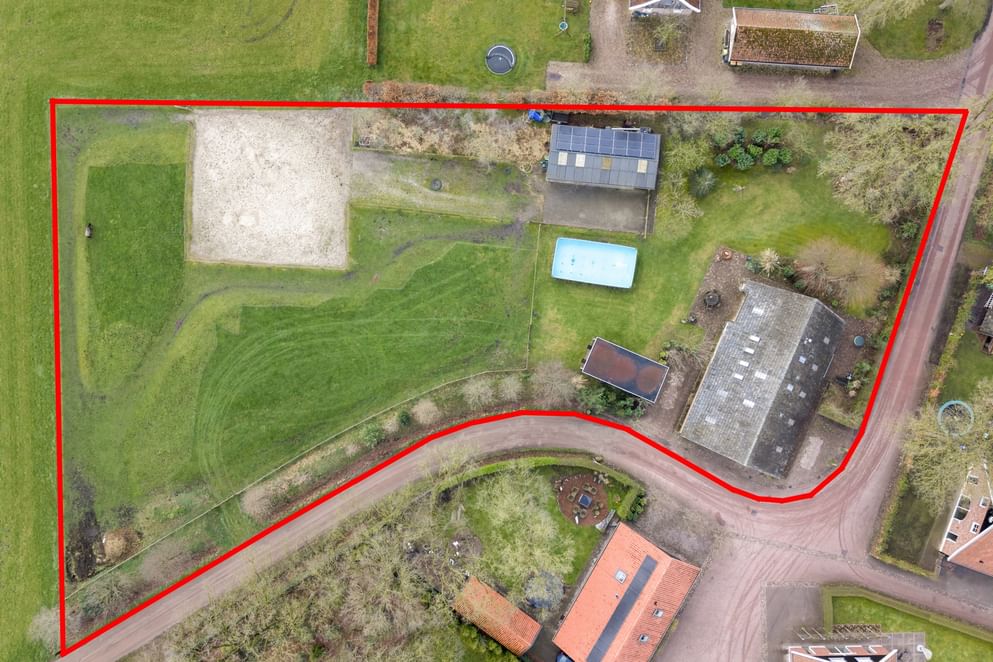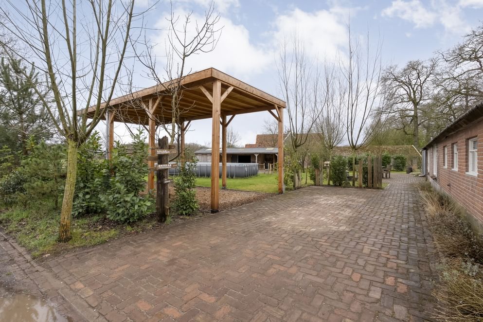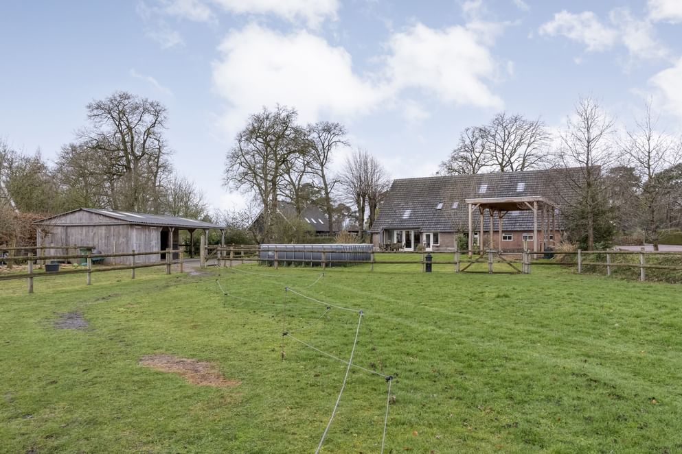 De woonboerderij beschikt over volop ruimte rondom de woning. Op het erf bevindt zich een paardenstal met overkapping, waarin een zadelkamer, hooiopslag en houtopslag zijn gerealiseerd. Daarnaast zijn er weilanden en een zand paddock aanwezig, waardoor deze locatie uitermate geschikt is voor het hobbymatig houden van paarden. Verder is er een extra overkapping aanwezig, ideaal voor het stallen van een camper.