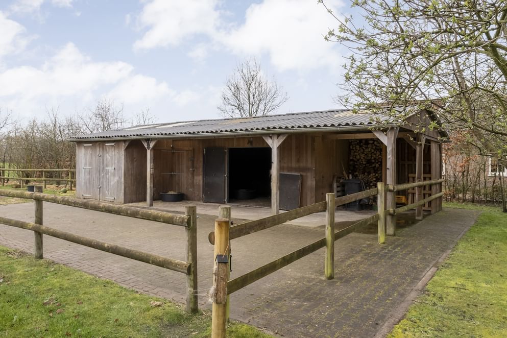 Buitenliefhebbers komen hier volledig aan hun trekken. Het erf biedt volop ruimte voor paarden en/of het hobbymatig houden van dieren. Zo is er een paardenstal/schuur met overkapping aanwezig, waarin zich een zadelkamer bevindt evenals praktische ruimte voor hooi- en houtopslag. Daarnaast beschikt het perceel over een zand paddock en aangrenzende weilanden. Een ideale plek voor wie landelijk wil wonen met ruimte voor hobby’s en gezin.