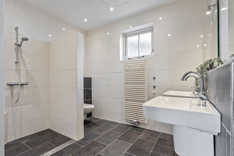 Wat deze woning extra aantrekkelijk maakt, is de aanwezigheid van een slaapkamer en badkamer op de begane grond. In combinatie met de grotendeels aanwezige vloerverwarming maakt dit het object uitermate geschikt voor gelijkvloers wonen, zonder in te leveren op ruimte.
