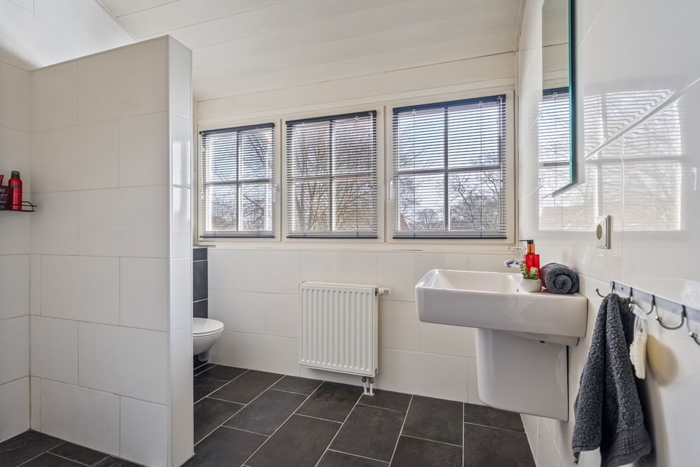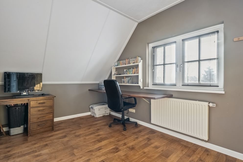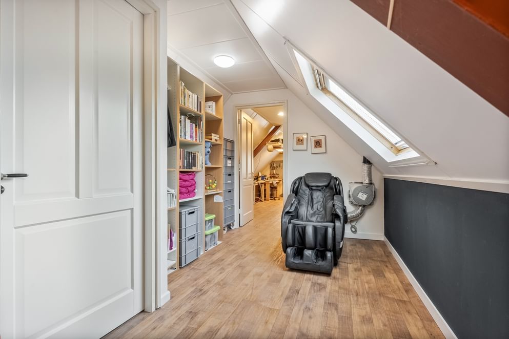 Vanaf de overloop heb je toegang tot drie slaapkamers en de badkamer. De badkamer is voorzien van een toilet, douche en wastafel. Vanuit één van de slaapkamers bereik je een extra kamer, die zich uitstekend leent als werkkamer of eventueel als extra slaapkamer.