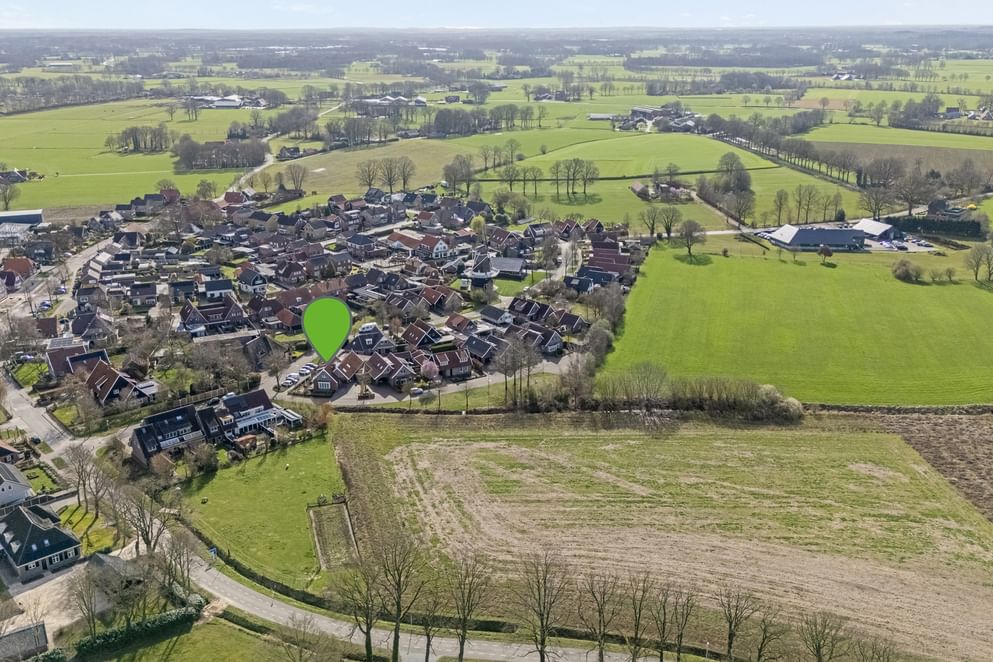 De ligging aan de dorpsrand, met vrij uitzicht en omgeven door het Twentse landschap, zorgt voor een unieke combinatie van rust, ruimte en bereikbaarheid.