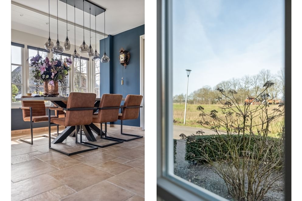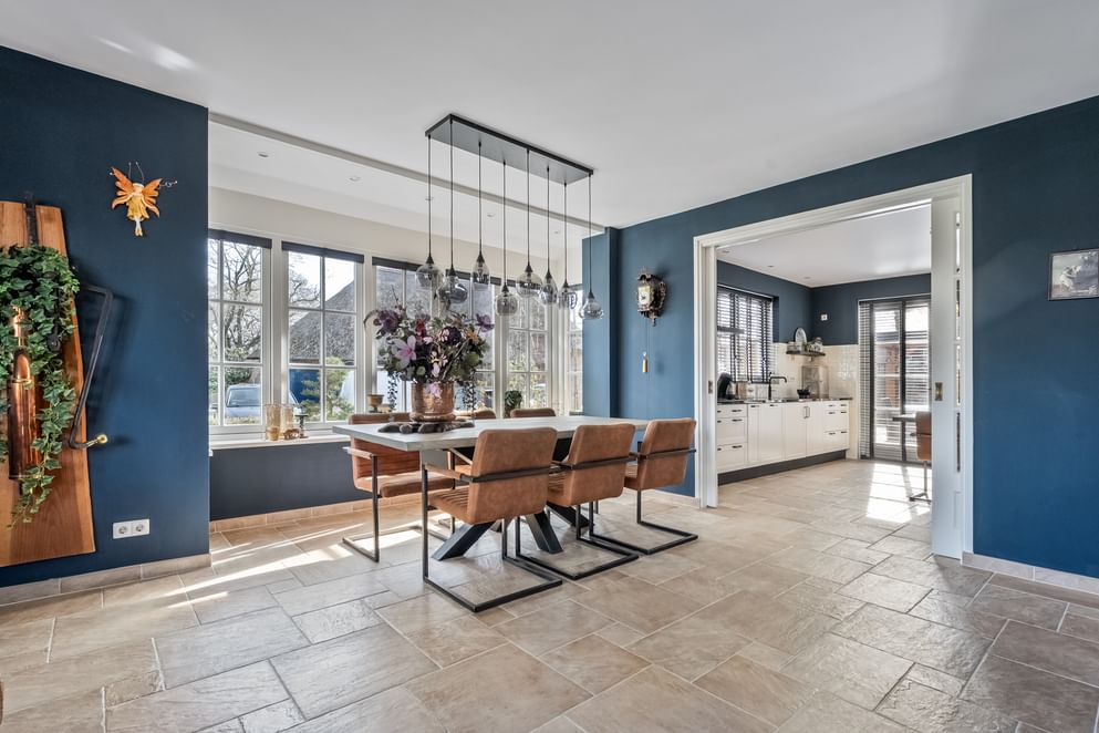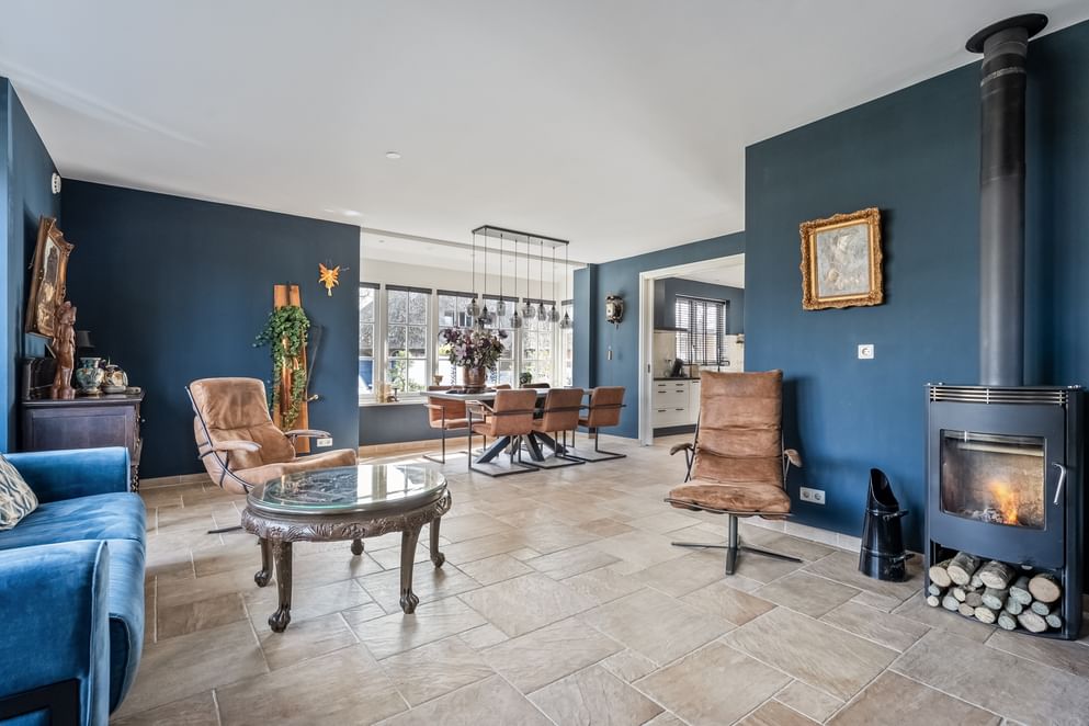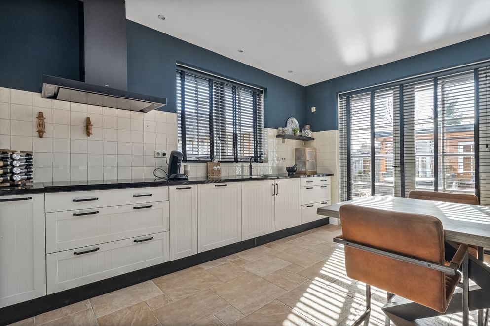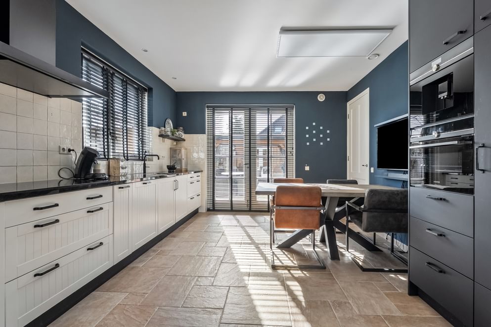 Dit object verwelkomt je met een warme en huiselijke uitstraling. De royale woon- en eetkamer vormt het centrale leefgedeelte en kenmerkt zich door maar liefst twee fraaie erkers, veel lichtinval en de mogelijkheid voor een houtkachel. Hier geniet je van een vrij uitzicht aan de voorzijde en een prettige verbinding met de rest van de woning. De moderne keuken sluit hier naadloos op aan en is voorzien van inbouwapparatuur, grotendeels vernieuwd in 2022. Via zowel schuifdeuren als tuindeuren is er direct toegang tot de tuin, wat zorgt voor een fijne interactie tussen binnen en buiten.