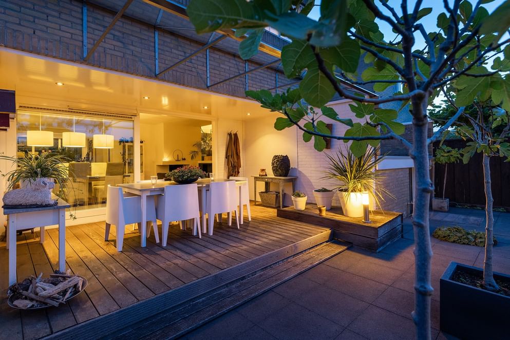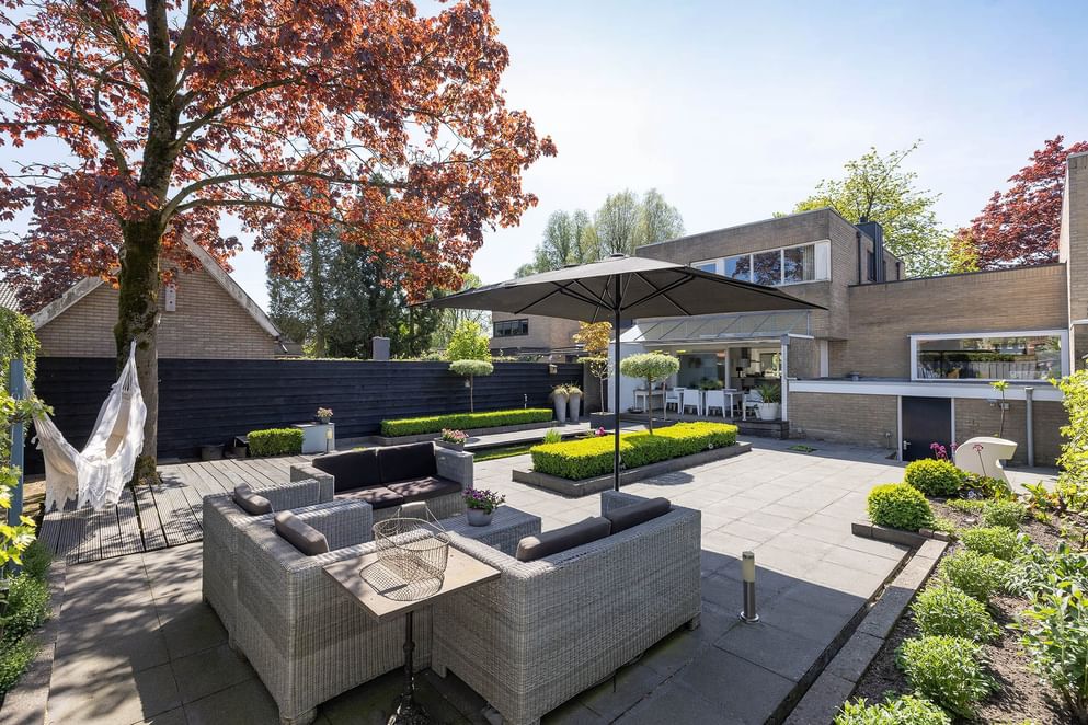 - Privacy biedende achtertuin met o.a. en overdekte veranda