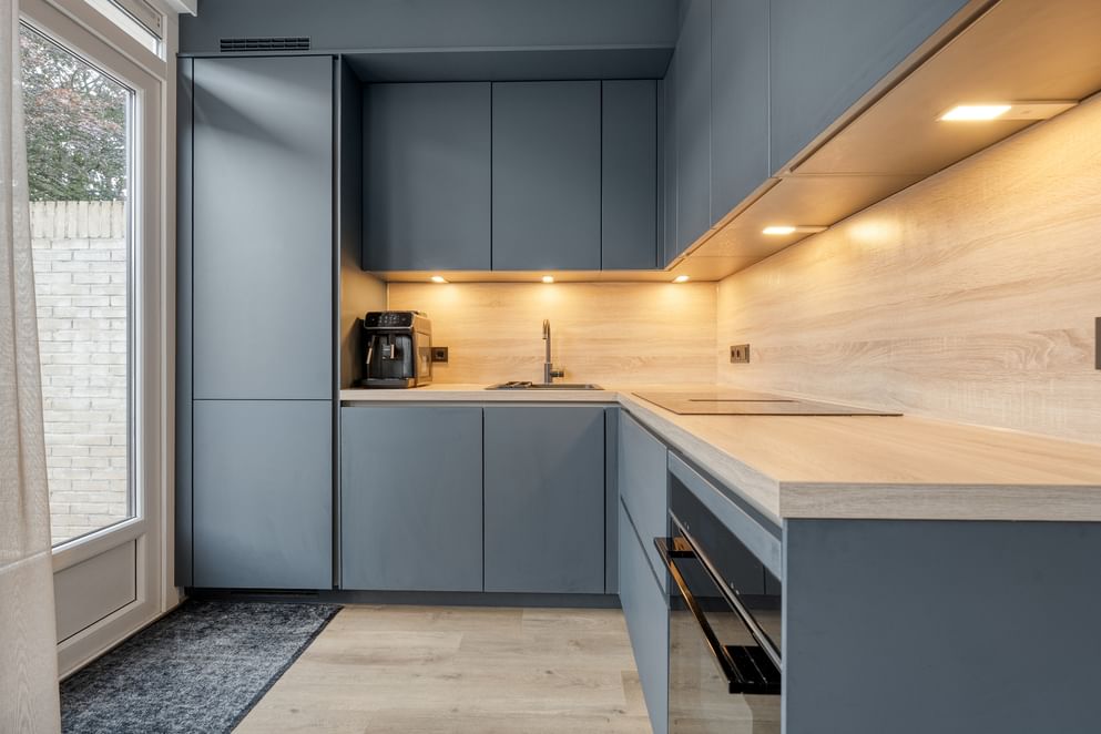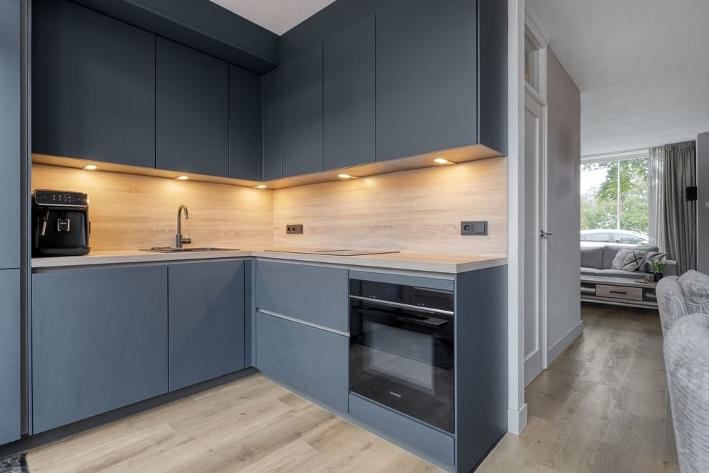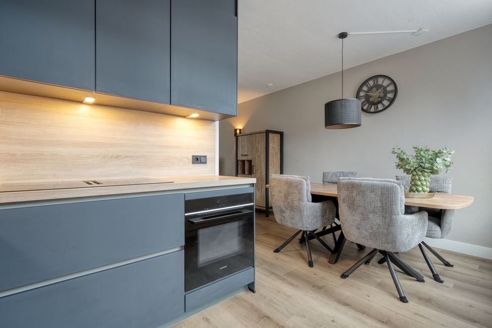Via de entree kom je binnen met toegang tot de woonkamer. De lichte woonkamer met vrij uitzicht aan de voorzijde is recent gemoderniseerd en voorzien van een airco om te verwarmen en koelen. De open keuken bevindt zich aan de achterzijde en is ingericht met een praktische keukenopstelling uit 2024 voorzien van een inductiekookplaat met geïntegreerde afzuiging, combi-oven, vaatwasser, koelkast en vriezer. Vanuit de woonkamer is de hal te bereiken met trapopgang en een toiletruimte.