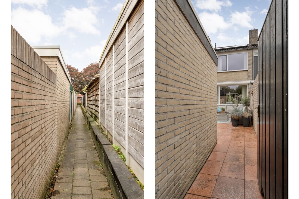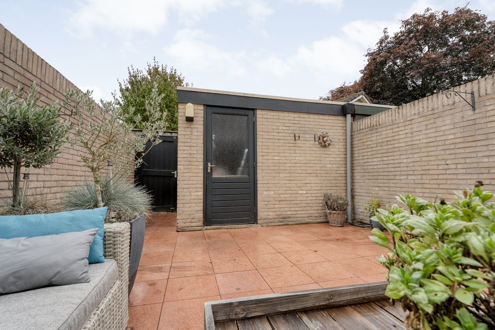 De onderhoudsvriendelijke tuin is gelegen op het zuiden en beschikt over een berging, handig voor het stallen van fietsen of opslaan van spullen. De tuin is ook middels een achterom te bereiken.
