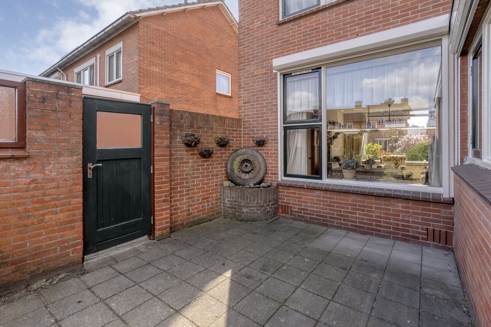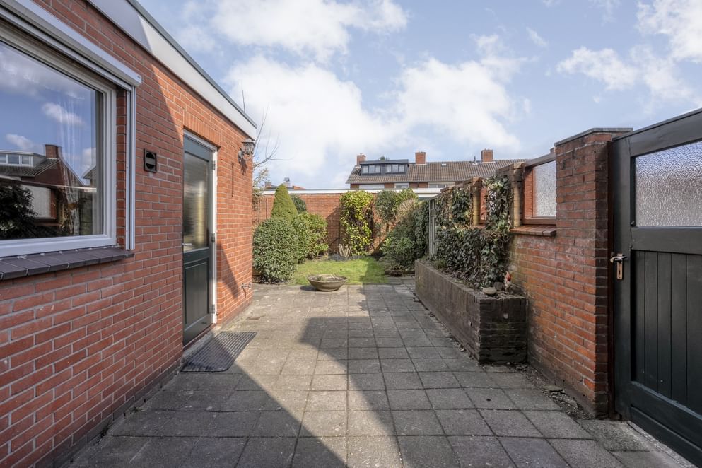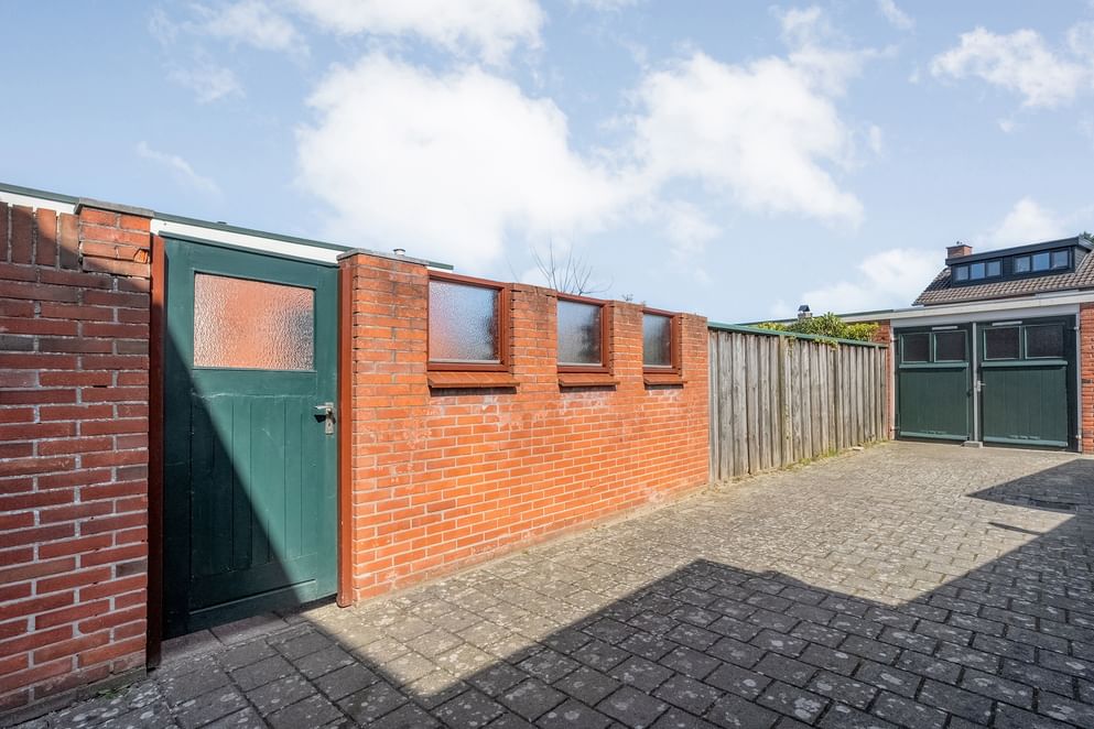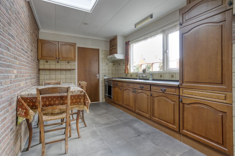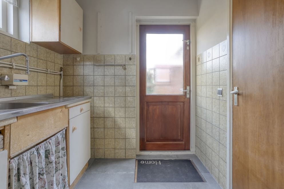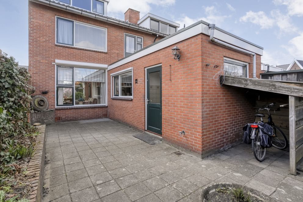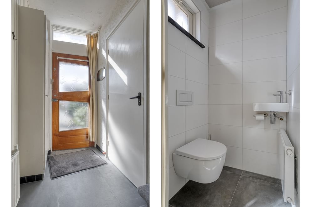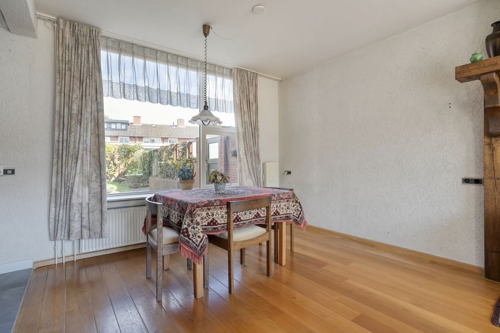 Via de voordeur kom je binnen in de entree, waar zich het toilet, de meterkast en de trapopgang bevinden. Vanuit de entree heb je toegang tot de woon- en eetkamer. Deze ruimte is voorzien van een gashaard, wat zorgt voor extra warmte en een gezellige sfeer. De keuken bevindt zich aan de achterzijde van de woning en is uitgerust met diverse inbouwapparatuur, waaronder een gasfornuis, oven, koelkast en afzuigkap. Aansluitend bereik je de bijkeuken, waar zich onder andere een keukenblok met wastafel bevindt. De bijkeuken biedt tevens toegang tot de achtertuin, waar een overkapping aanwezig is. Deze overkapping is ideaal voor het stallen van fietsen en biedt daarnaast extra opslagruimte.