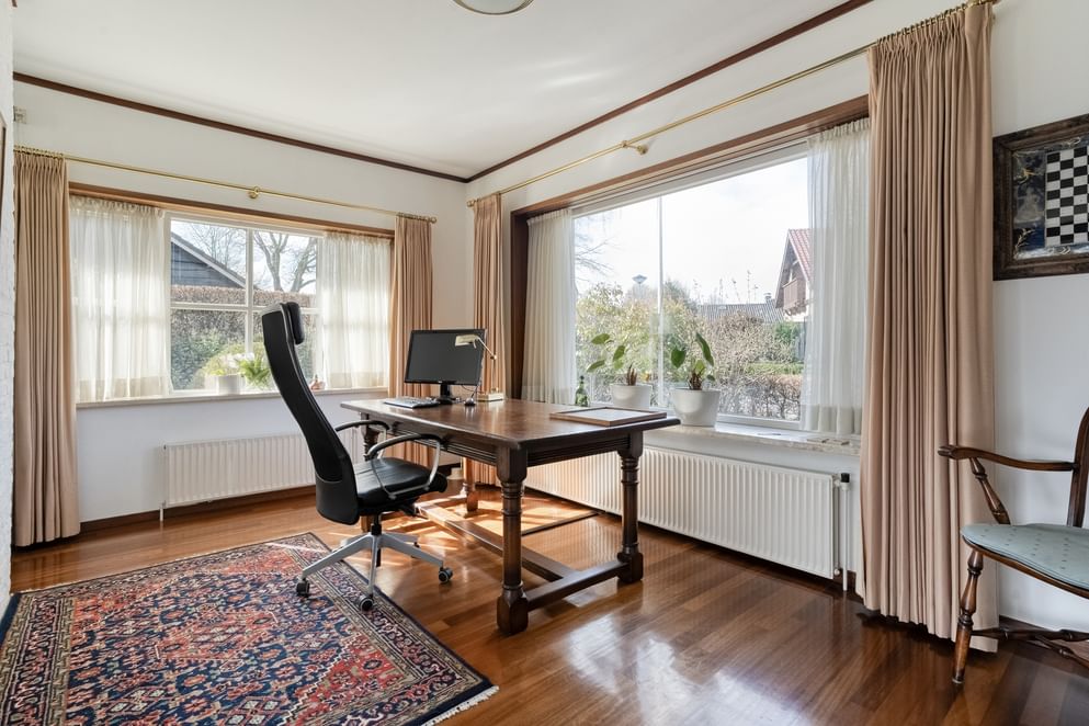 De woning biedt volop leefruimte, een praktische indeling en diverse mogelijkheden voor werken aan huis. Bij binnenkomst valt direct de ruime woonkamer op, die flexibel is in te delen in meerdere hoeken, zoals een zit- en eetgedeelte. De grote schuifpui zorgt voor een prettige lichtinval en biedt een mooi uitzicht over het achtergelegen Dinkeldal. De aanwezige open haard draagt bij aan een warme en sfeervolle ambiance. Daarnaast beschikt de woning over een kantoorruimte op de begane grond, ideaal als werk- of hobbyruimte aan huis. Op de verdieping bevinden zich drie zeer ruime slaapkamers en twee complete badkamers, wat zorgt voor extra comfort en gemak voor het hele gezin.