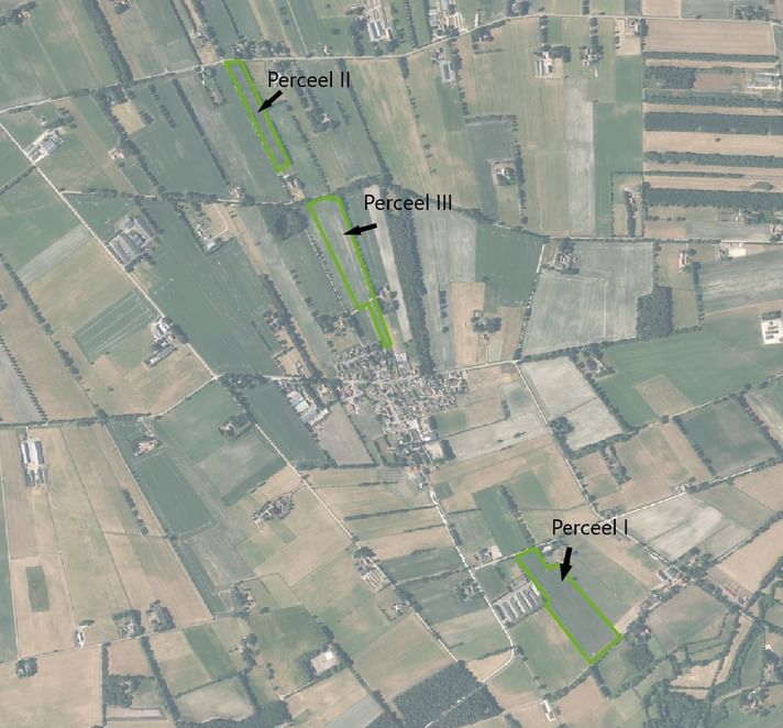 De percelen zijn ter plekke te herkennen door het WEUSTHUIS MAKELAARDIJ TE KOOP-bord.