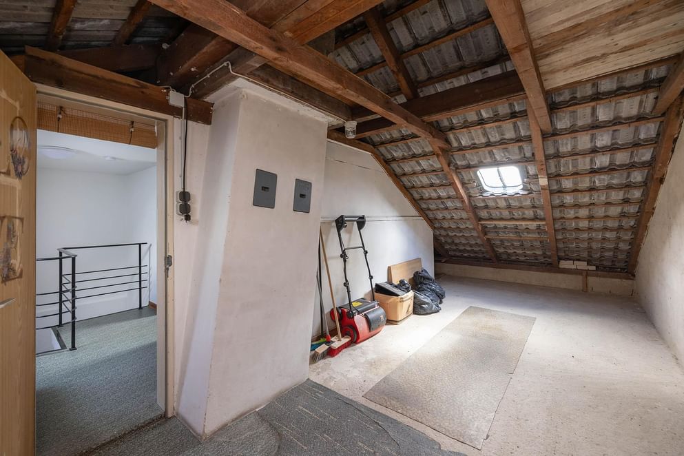 Via een vaste trap bereikt u de overloop met knieschotten, ideaal als extra bergruimte. Op deze verdieping bevindt zich tevens de vierde slaapkamer, voorzien van een dakvenster en vaste kasten. Daarnaast is er nog een tweede, niet-afgewerkte ruimte die momenteel dienstdoet als bergzolder.