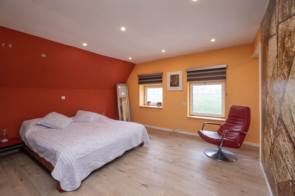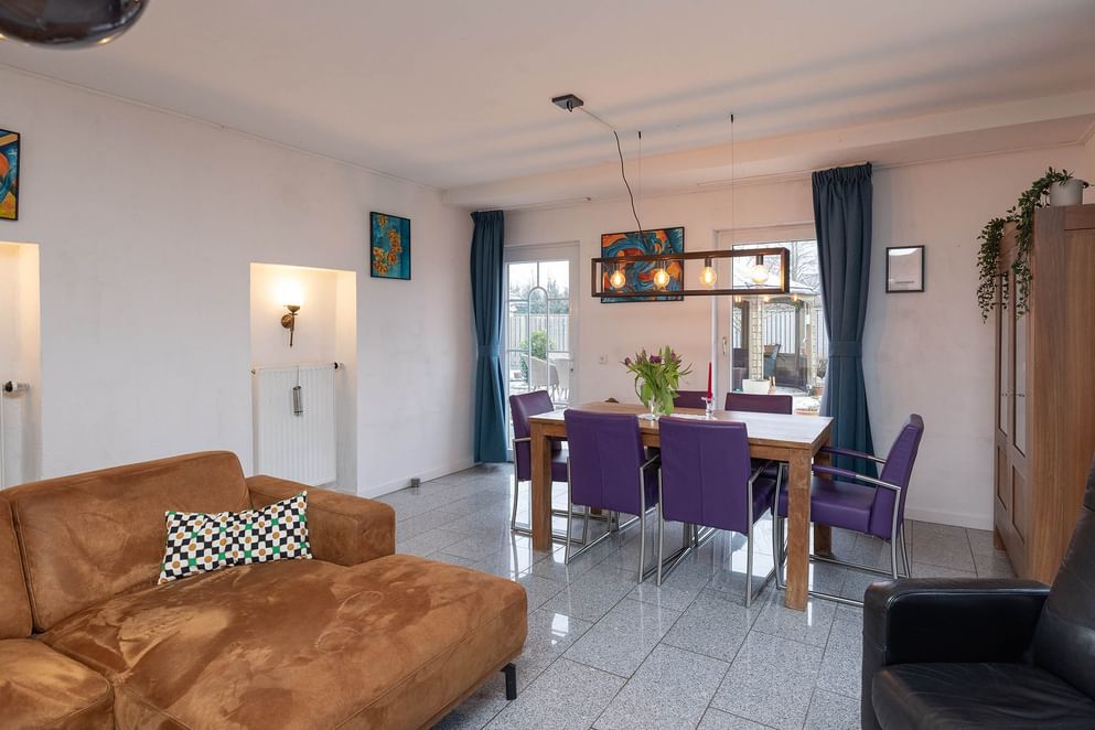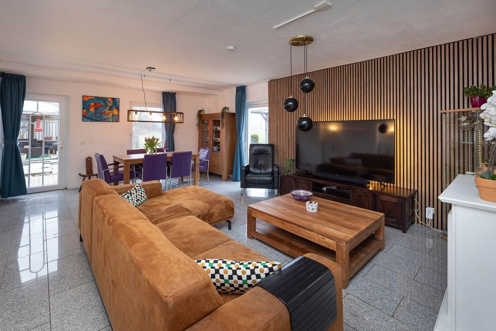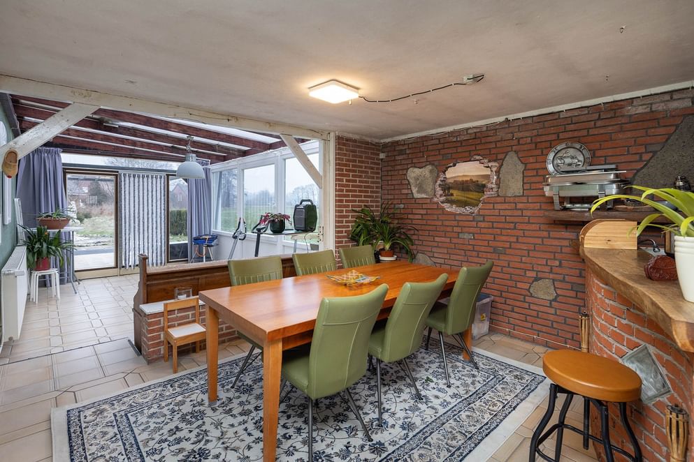Bij binnenkomst valt direct de lichtinval op. De woonkamer biedt een prachtig uitzicht op de tuin en de achtergelegen weidevelden. Via de openslaande deuren stap je zo het terras op, waar je 's ochtends kunt genieten van de opkomende zon en 's avonds in alle rust de dag afsluit. De serre met bar en grote raampartijen is een heerlijke plek om het hele jaar door te ontspannen en van het buitenleven te genieten.