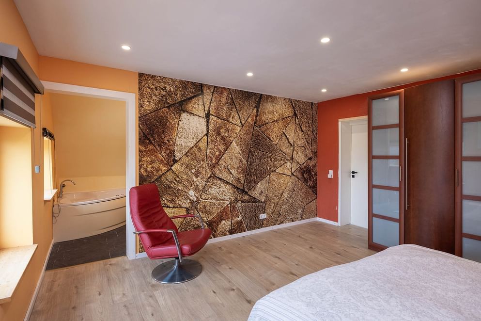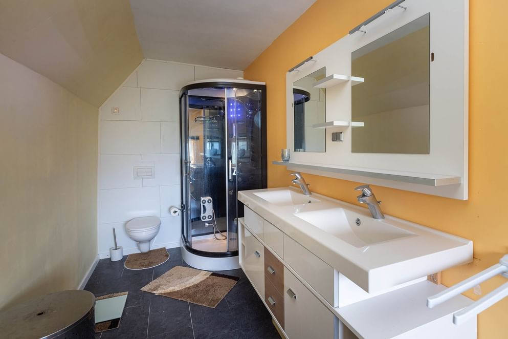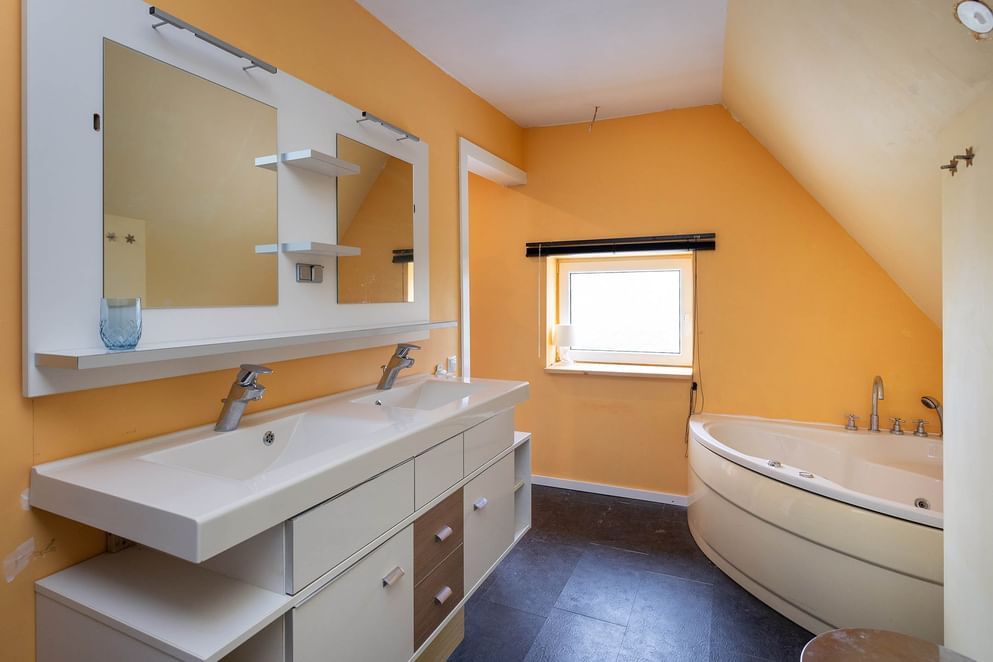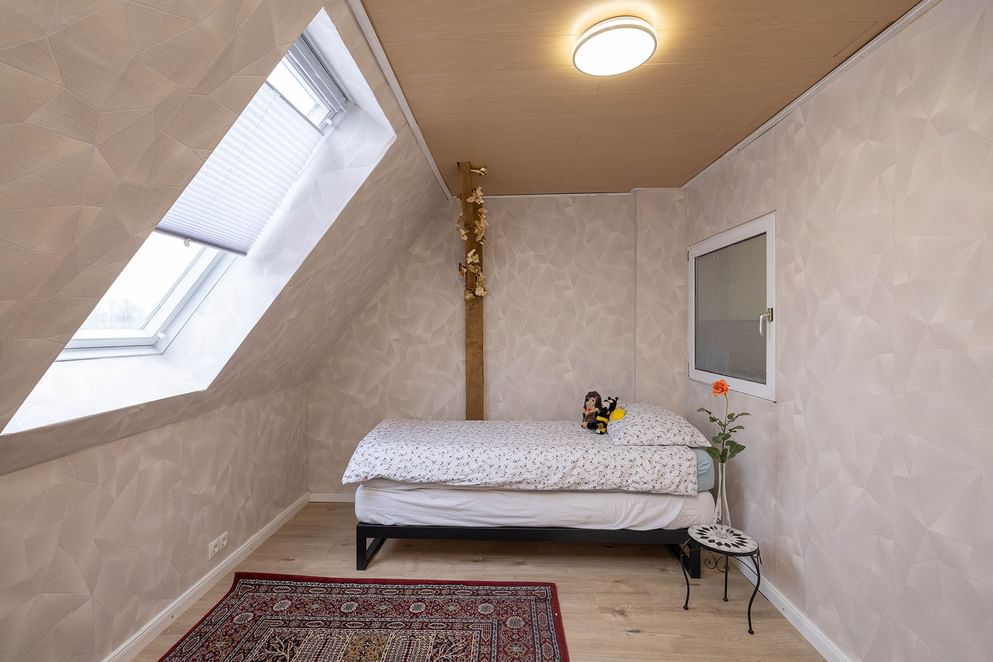De overloop leidt naar een zeer ruime slaapkamer aan de achterzijde. Hier vind je tevens een inpandige badkamer met hoekbad, douche en dubbele wastafel. Daarnaast bevindt zich hier nog een extra slaapkamer en een grote zolderruimte die volledig naar wens in te richten is.