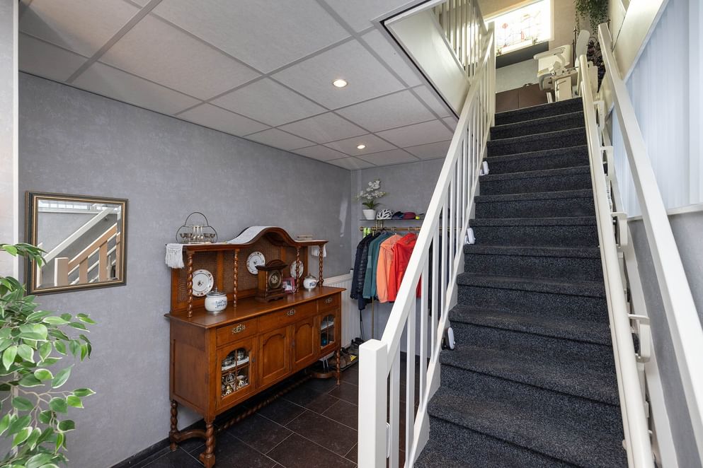 - Begane grond: entree v.v. garderobe, meterkast, trapopgang.