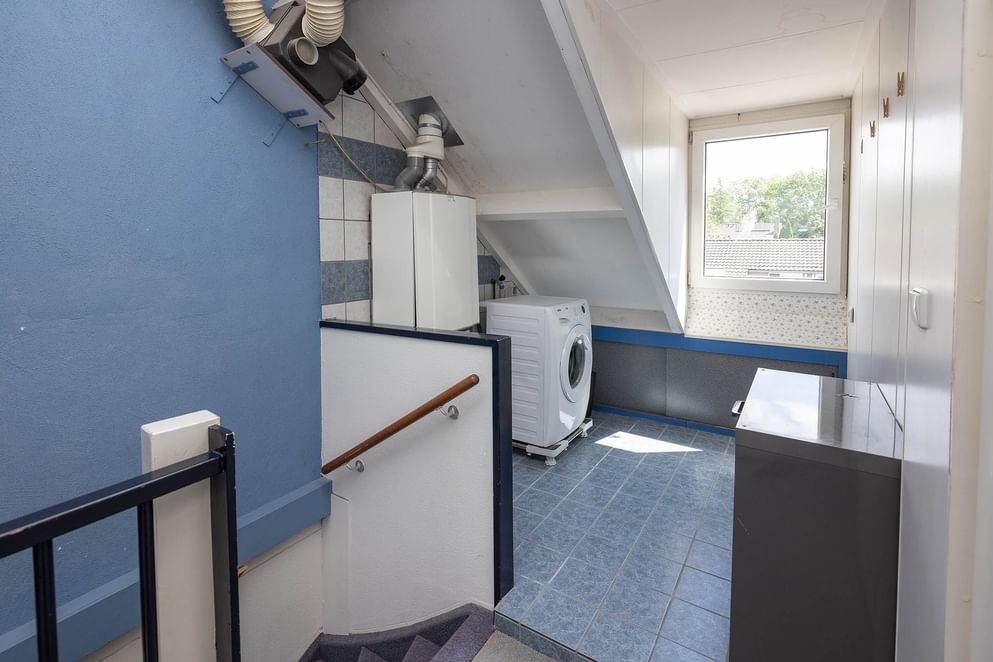Via een vaste trap kom je op de tweede verdieping. Op de overloop is ruimte voor de wasmachine en droger. Dankzij de dakkapel aan de voor- en achterzijde is er extra lichtinval en meer ruimte ontstaan. Deze verdieping beschikt over twee kamers die flexibel te gebruiken zijn, bijvoorbeeld als slaapkamer, werkplek of speelkamer. De indeling biedt diverse mogelijkheden om de ruimte aan te passen aan je eigen wensen.
