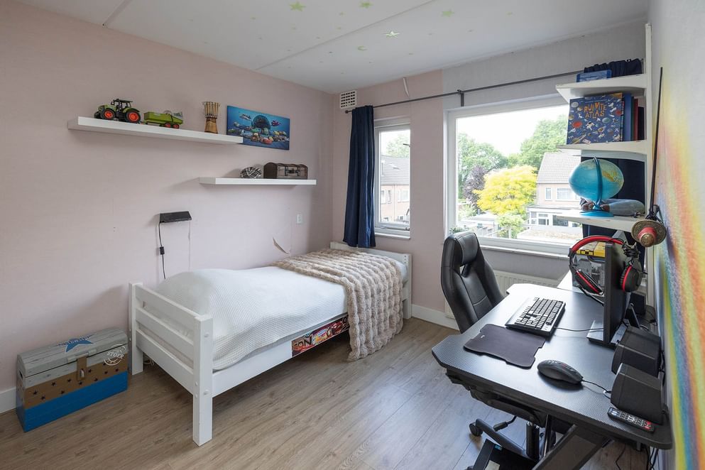 De woning beschikt onder andere over maar liefst vijf slaapkamers, verdeeld over meerdere verdiepingen. Ideaal voor een groter gezin, werken vanuit huis of het inrichten van een hobbyruimte. Aan de achterzijde is de woning uitgebouwd en voorzien van grote raampartijen, wat zorgt voor veel daglicht in de woonkamer en een prettige verbinding met de tuin. Vanuit de woonkamer stap je zo het verhoogde terras op, gelegen op het zuidwesten. Perfect om nog lang van de zon te genieten. De achtertuin is speels ingedeeld met verschillende niveaus, onderhoudsvriendelijk aangelegd en voorzien van een achterom. Tevens beschikt de achtertuin over een vrijstaande berging, ideaal voor het stallen van fietsen en-/of tuingereedschap.