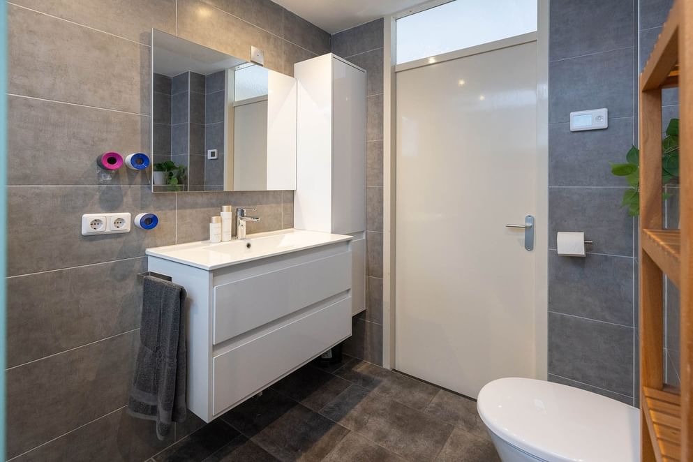 Via de overloop heb je toegang tot drie comfortabele slaapkamers en de badkamer. Deze is voorzien van een inloopdouche, wastafelmeubel, wandcloset en een infraroodpaneel.