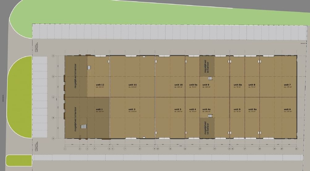 De bedrijfsunits worden onverwarmd gegund en zijn geschikt voor opslag. Indien deze unit gebruikt gaat worden als werkplaats of kantoor zal de opdrachtgever zelf contact moeten opnemen met de gemeente voor daarvoor geldende vergunningen.