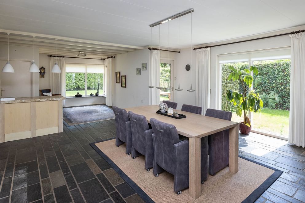 In een rustige, groene wijk van Oldenzaal staat deze charmante woning met opvallend veel ruimte, zowel binnen als buiten. Dankzij de slaapkamer en badkamer op de begane grond is gelijkvloers wonen hier uitstekend mogelijk – comfortabel en toekomstbestendig. De woning wordt omringd door een royale, fraai aangelegde tuin met volwassen eiken en volop privacy. Binnen vormt de lichte, brede woonkamer het hart van het huis. Grote raampartijen zorgen voor een prachtige lichtinval en bieden uitzicht op het groen rondom. De vide in de hal versterkt het open en luchtige gevoel en zorgt voor een speels ruimtelijk effect. De indeling is functioneel en biedt volop mogelijkheden om naar eigen wens aan te passen. De diepe tuin is een waar buitenparadijs, met meerdere zitplekken, speelruimte voor kinderen en alle ruimte voor tuinliefhebbers of buitenmensen. Achterin de tuin bevindt zich een grote vrijstaande garage/schuur: ideaal als klusruimte, opslag, voor het stallen van een caravan of oldtimer, of als speelplek voor de kinderen. Een perfecte toevoeging voor hobbyisten of jonge gezinnen.