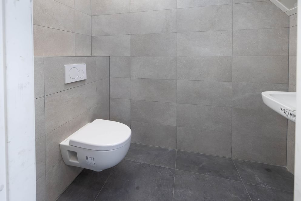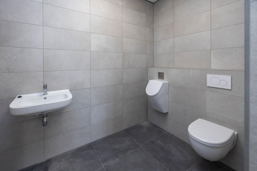 - Begane grond (ca. 210 m²): v.v. een monolithisch afgewerkte geïsoleerde betonvloer, bedrijfsruimte/showroom, toiletruimte v.v. toilet en fontein, toiletruimte v.v. urinoir, toilet en fontein, vaste trap naar eerste verdieping.