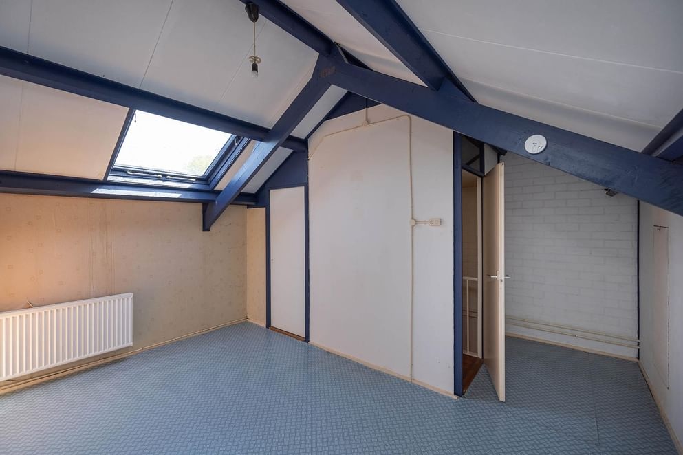 De tweede verdieping is bereikbaar met een vaste trap en beschikt over een ruime vierde slaapkamer of hobbyruimte. Dankzij het dakraam heb je veel natuurlijk lichtinval op de tweede verdieping. Hier bevindt zich een royale bergruimte met de cv-installatie en de omvormer voor de zonnepanelen. Je hebt hier tevens de mogelijkheid voor het plaatsen van een wasmachine.