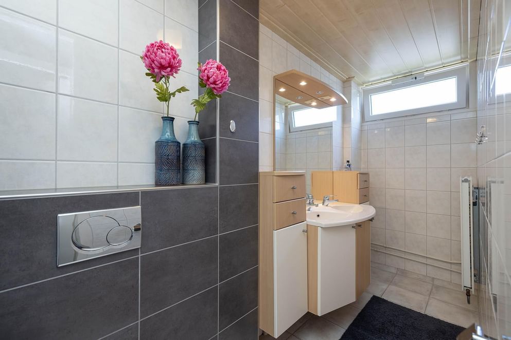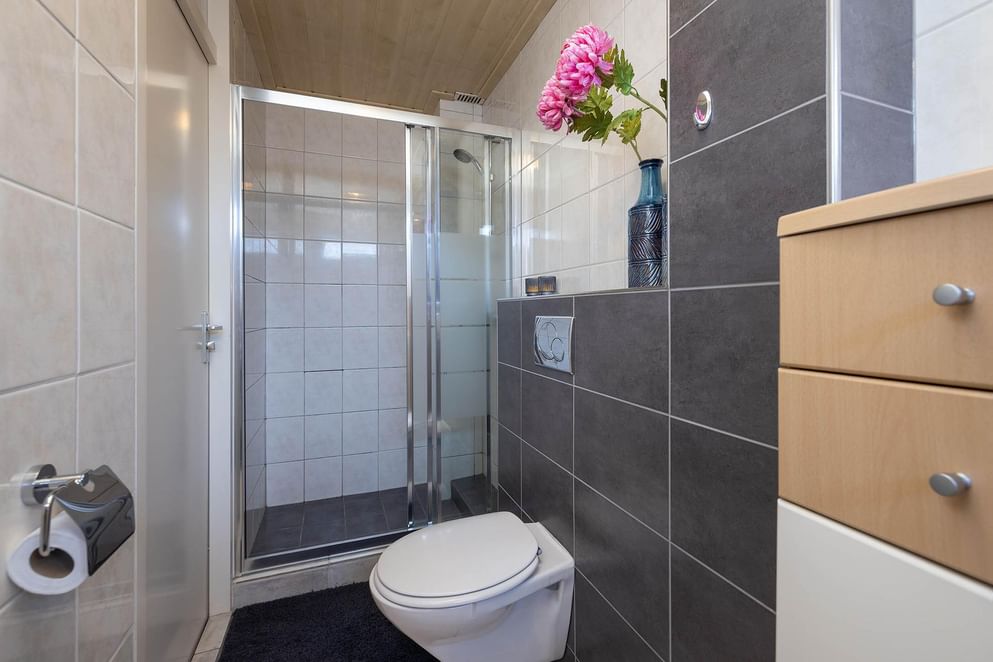 Via de vaste trap kom je op de overloop, met toegang tot drie slaapkamers en de badkamer. Alle slaapkamers beschikken over rolluiken en één van de slaapkamers is voorzien van een airco en een andere slaapkamer is uitgerust met wasmachine-aansluiting. De badkamer is voorzien van een douche, wastafel met meubel en een toilet.