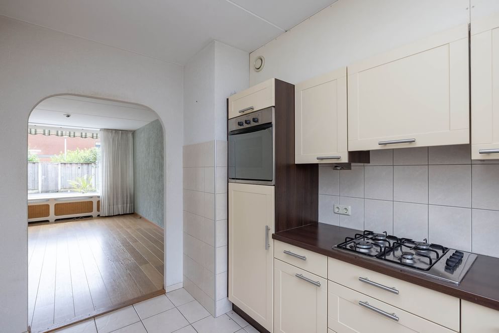 Bij binnenkomst valt direct de lichte woonkamer op, die met een boogvormige doorgang verbonden is met de keuken. Dit zorgt voor een open en praktische leefruimte. Daarnaast stap je zo vanuit de woonkamer de achtertuin in. Deze is strak en onderhoudsvriendelijk aangelegd. Een ideale plek om ’s ochtends in alle rust te genieten van een kop koffie in de zon, of om op een warme zomeravond gezellig te borrelen. Op de eerste verdieping bevinden zich drie comfortabele slaapkamers en bereik je via een vaste trap de tweede verdieping. Hier bevindt zich een ruime kamer, die geschikt is als vierde slaapkamer, werkplek of hobbyruimte. Maar dat is nog niet alles! Aan de voorzijde van de woning vind je een vrijstaande stenen berging, perfect voor het stallen van fietsen of het opbergen van tuinspullen en gereedschap. Bovendien beschikt de woning over een energielabel C, waardoor de energiekosten relatief laag.