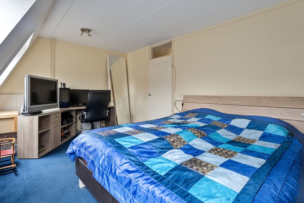 Via de vaste trap is de tweede verdieping bereikbaar. Hier bevinden zich de witgoedaansluitingen, een vaste kast en een derde kamer. Deze kamer beschikt eveneens over vaste kasten onder de knieschotten en kan volledig naar eigen wens worden ingericht, bijvoorbeeld als extra slaapkamer, thuiswerkkantoor of hobbyruimte.