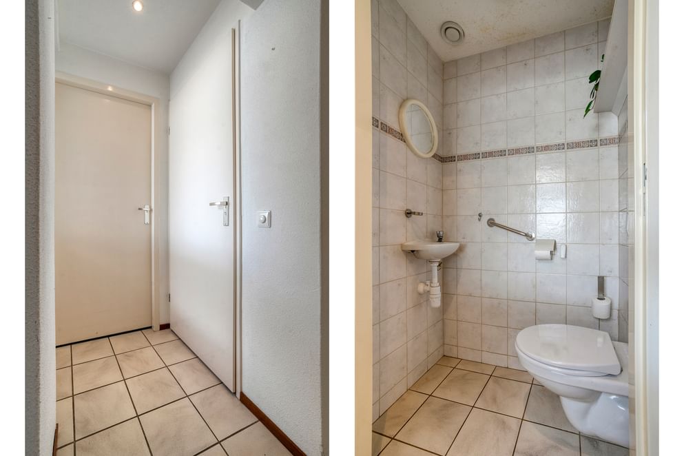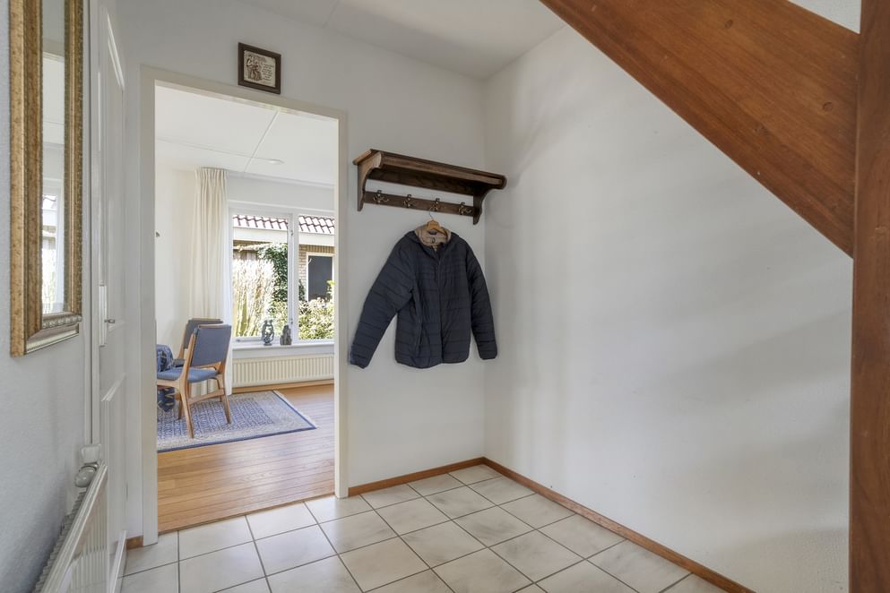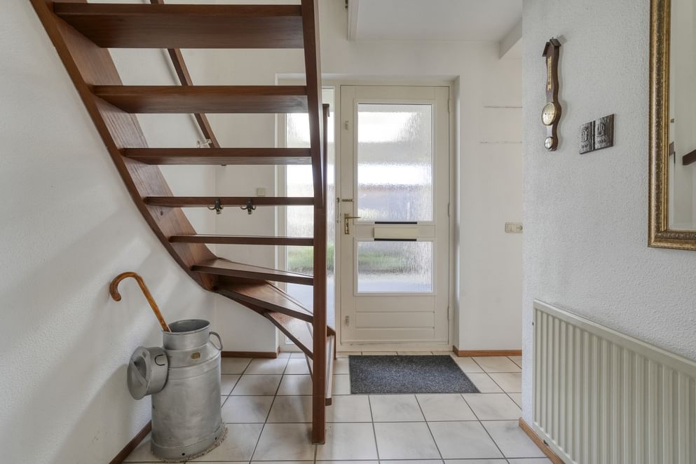 Via de voordeur kom je binnen in de hal. Vanuit hier heb je toegang tot alle ruimtes op de begane grond. In de hal bevinden zich de meterkast, het toilet en de trapopgang naar de eerste verdieping.