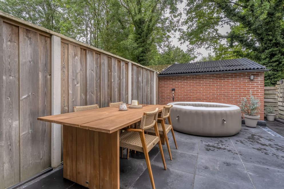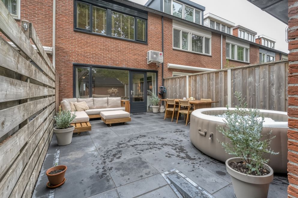 De verzorgde achtertuin ligt op het noordwesten en biedt veel privacy. In 2024 is de tuin geheel nieuw aangelegd en daarbij volledig betegeld, waardoor deze onderhoudsvriendelijk én praktisch is ingericht. Achterin vind je een vrijstaande stenen berging met elektra en een overkapping. Via de achterom is de tuin bovendien eenvoudig bereikbaar.