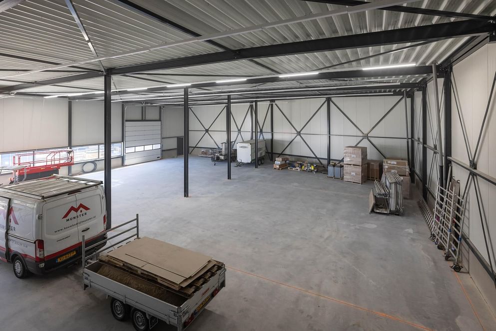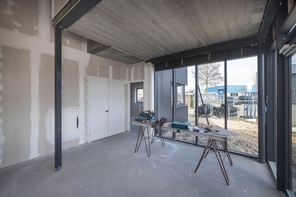 Het betreft een bedrijfsruimte van circa 669 m² totaal en een kantoorruimte verdeeld over de begane grond en eerste verdieping. Het pand wordt energiezuinig gebouwd en voorzien van comfortabele vloerverwarming via een lucht-water warmtepomp, wat zorgt voor lage energielasten en een aangenaam binnenklimaat, zowel in de zomer als winter. De bedrijfsruimtes en kantoorruimtes op de eerste verdieping zijn nog naar eigen wens in te delen en bieden jou diverse mogelijkheden (eventueel als showroom of kantoor). Naast de fraaie hoofdingang beschikt het object over twee zijingangen. Door de grote raampartijen is het object v.v. veel daglicht.