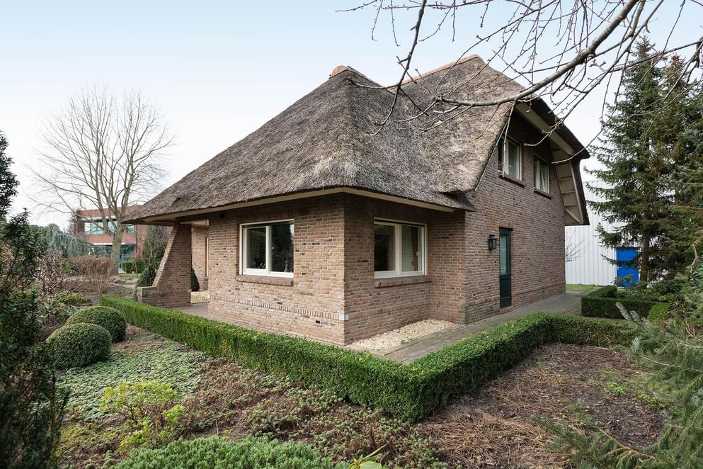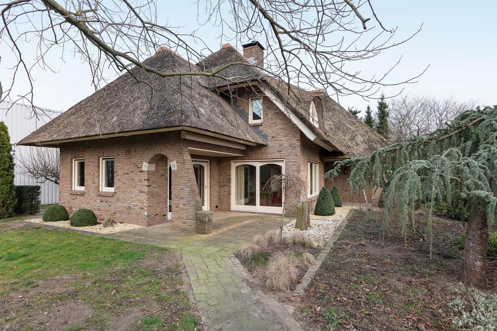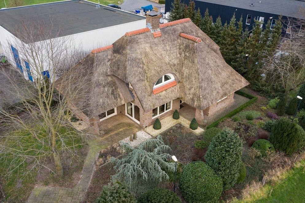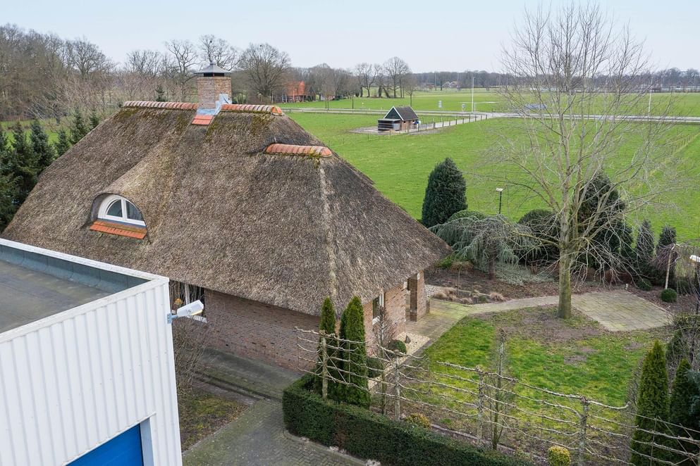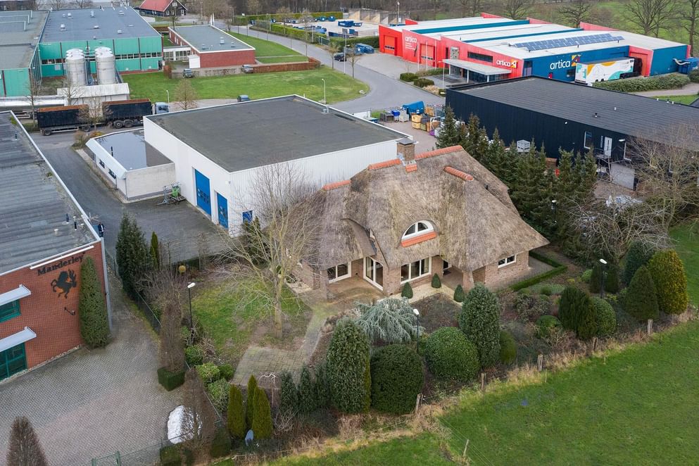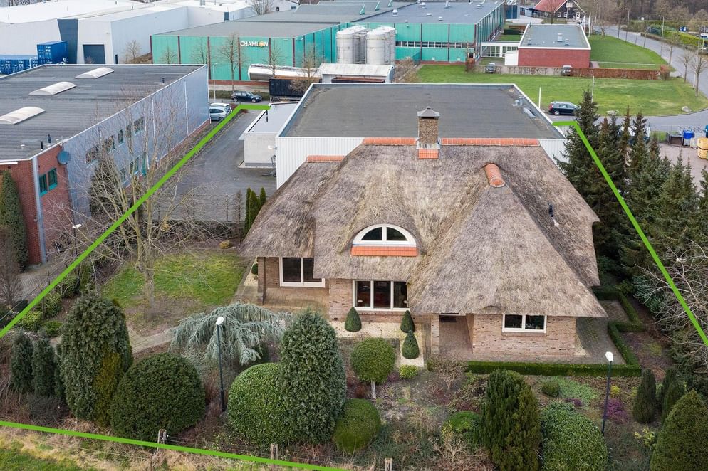 Deze fraaie VRIJSTAANDE RIETGEDEKTE BEDRIJFSWONING met BEDRIJFSHAL is gelegen op een uitstekende locatie op industrieterrein "De Mors" in Ootmarsum.