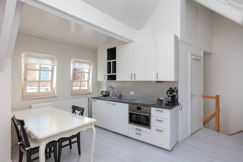 Dit recent gemoderniseerde pand combineert de charme van het oude centrum met het comfort van een stijlvolle loftwoning op de verdieping. De begane grond bestaat uit een royale, open ruimte met hoge plafonds en meerdere entrees, wat het pand uitermate geschikt maakt als winkel- of werkruimte. Boven bevindt zich een sfeervol woonappartement met een open indeling, nette keuken, moderne badkamer en een zonnig terras op het zuiden – ideaal voor een 1- of 2-persoonshuishouden.