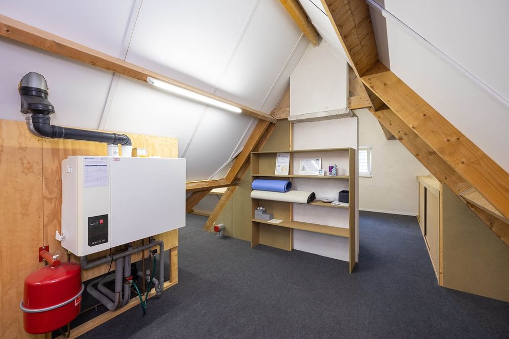 Deze verdieping is bereikbaar via twee vaste trappen en biedt veel ruimte, wat het perfect maakt voor opbergruimte. Daarnaast is de stookruimte ook op deze verdieping te vinden.