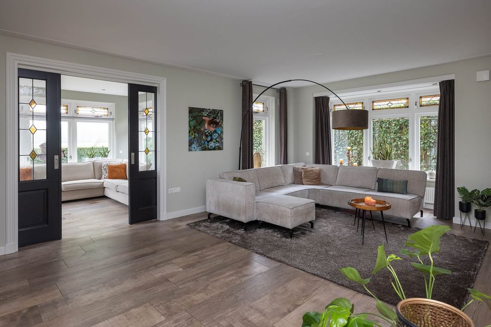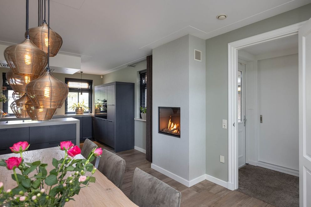 Binnen ervaar je een lichte en aangename sfeer, dankzij de ruime kamers en de open indeling. De stijlvolle open keuken met kookeiland vormt het hart van het huis – een ideale plek om samen te koken en te genieten van gezellige diners. De tuinkamer, met directe verbinding naar de fraai aangelegde tuin op het zuidoosten, biedt een sfeervolle ruimte om te ontspannen en optimaal te genieten van binnen-buitenleven. De tuin zelf is een oase van rust, met veel privacy en volop zon.