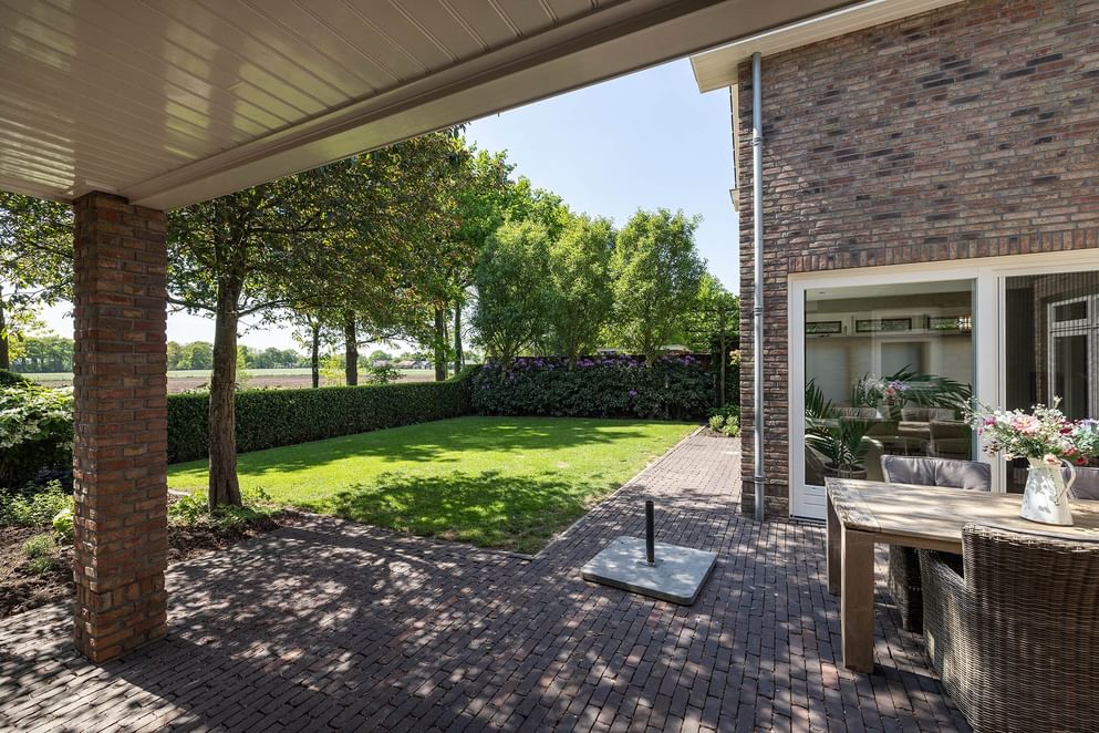 De achtertuin is ruim en netjes aangelegd, met vrij uitzicht aan de achterzijde, wat zorgt voor veel privacy. Door de ligging op het zuidoosten geniet je hier bijna de hele dag van de zon – perfect om te ontspannen of buiten te eten. De overkapping biedt een fijne plek om beschut te zitten. Ook de voortuin is verzorgd en aan de voorzijde vind je een ruime oprit met een nette carport, waar je gemakkelijk meerdere auto’s op eigen terrein kunt parkeren. Via de handige achterom is de tuin bovendien makkelijk bereikbaar.