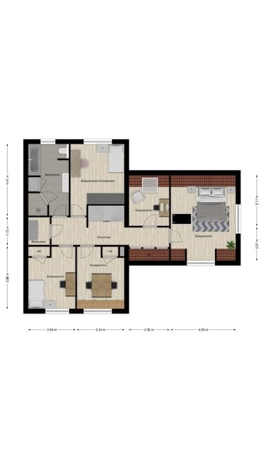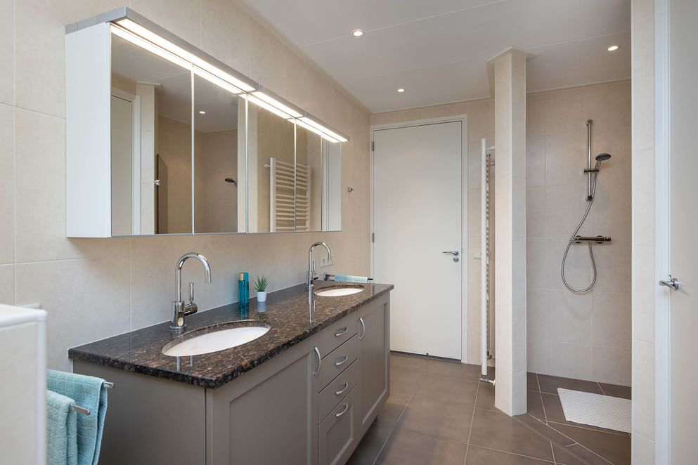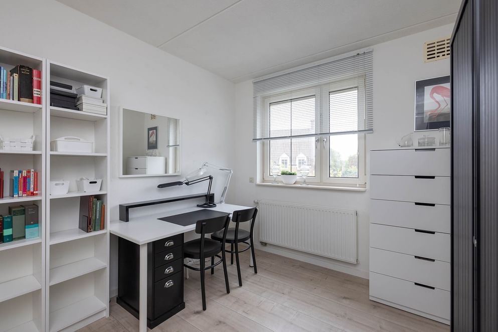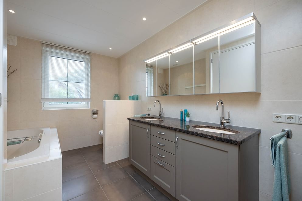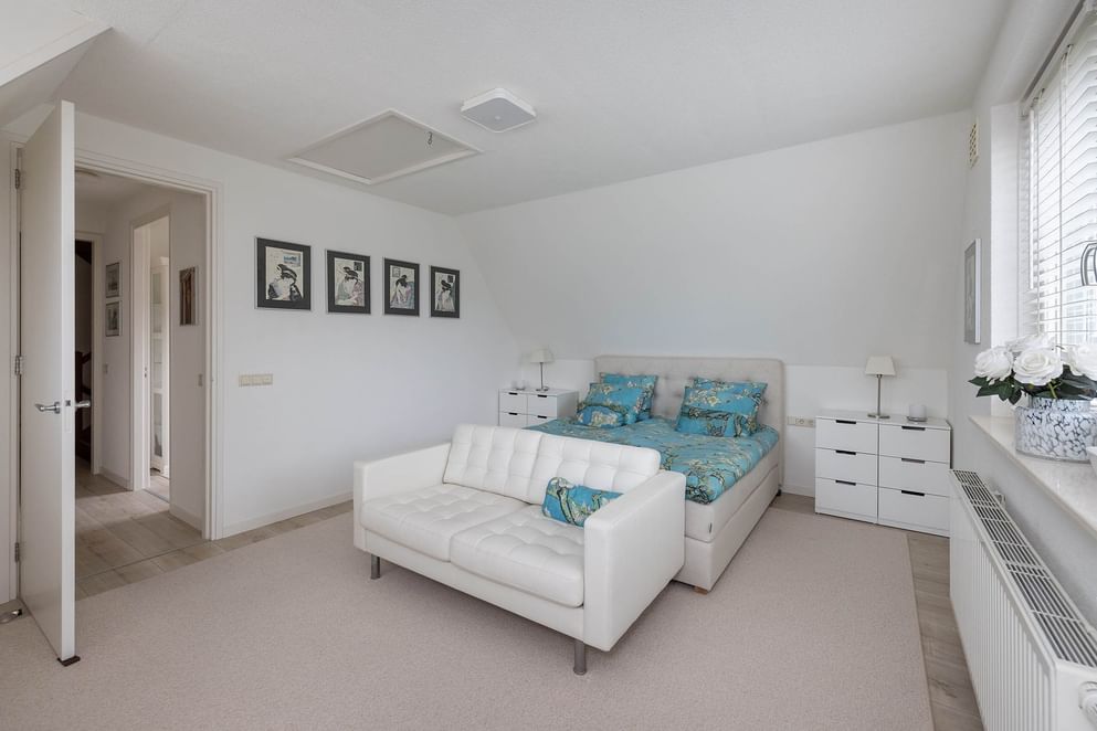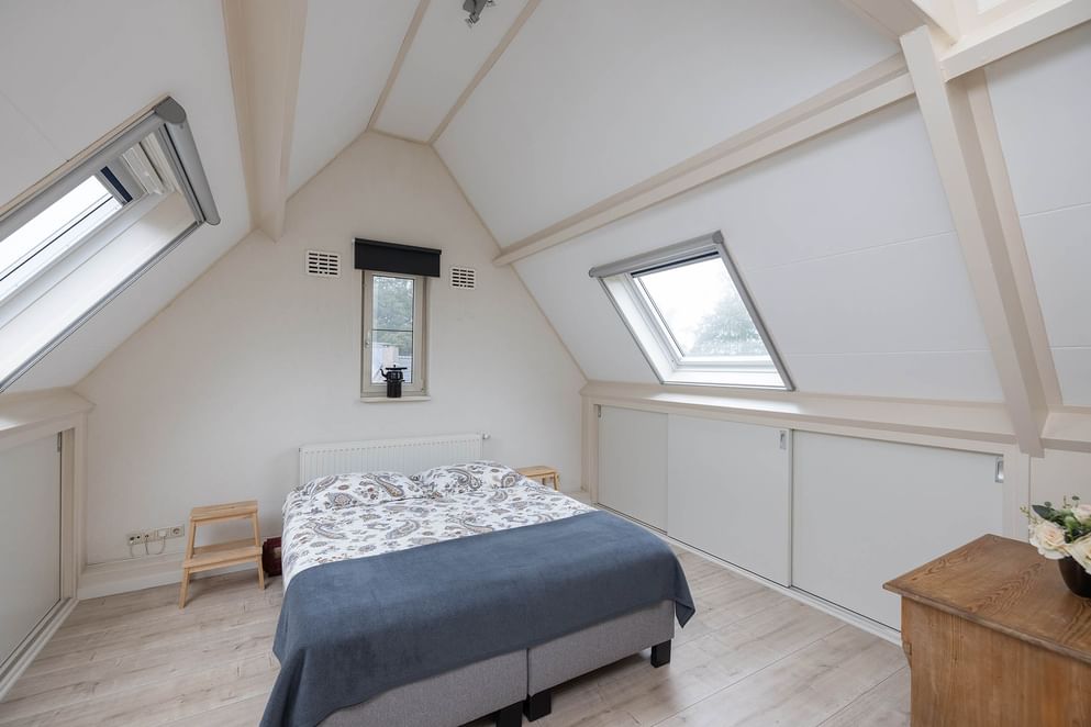 Via de overloop, welke beschikt over een grote schuifkastenwand, heb je toegang tot een vijftal royale slaapkamers, de badkamer en een praktische werk-/opbergkast. De ruime moderne badkamer is voorzien van een ligbad, dubbele wastafel, inloopdouche, toilet en een vaste kast. Vanuit de masterbedroom, welke beschikt over een dakkapel, heb je middels een vlizotrap toegang naar de royale bergzolder.