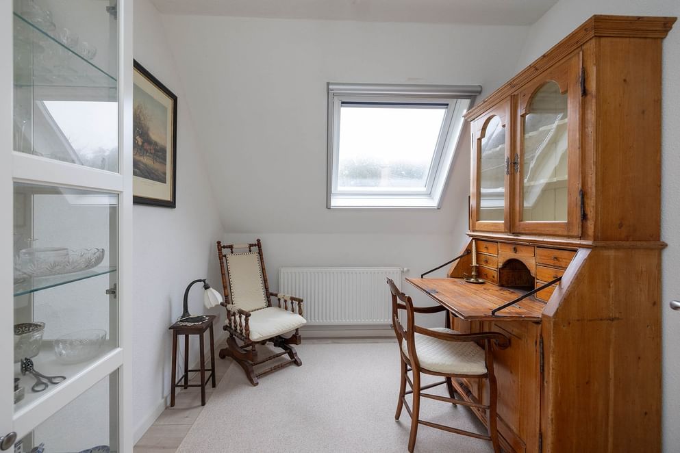 Via een vaste trap bereiken we de tweede verdieping die ruimte biedt aan een royale slaapkamer en een grote hobby-/slaapkamer. Beide vertrekken zijn zeer ruim en beschikken over veel daglicht én bergruimte. Eén kamer beschikt over een wastafel, ideaal voor logés.