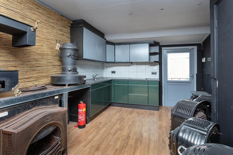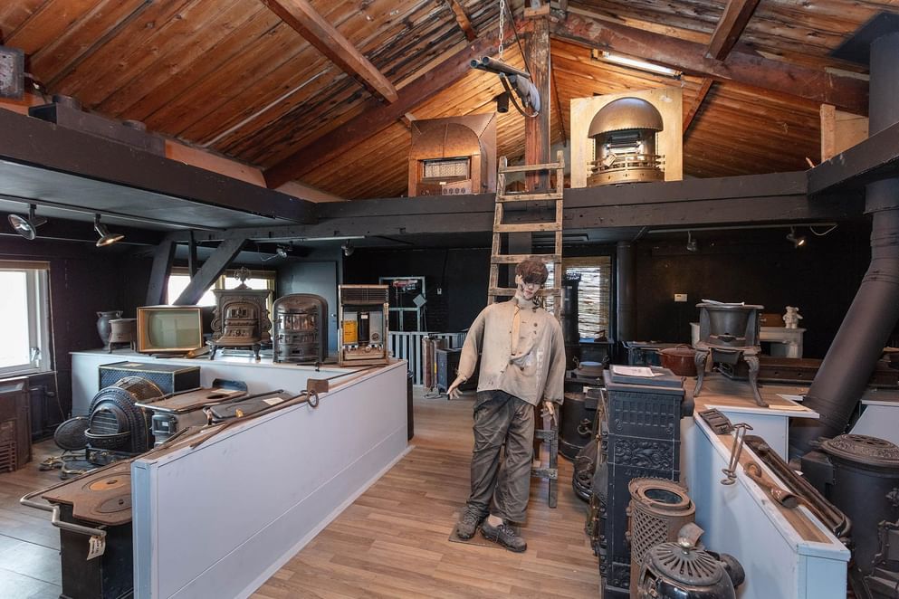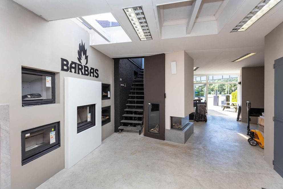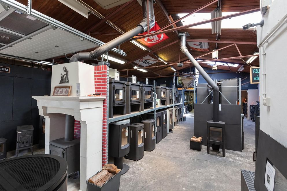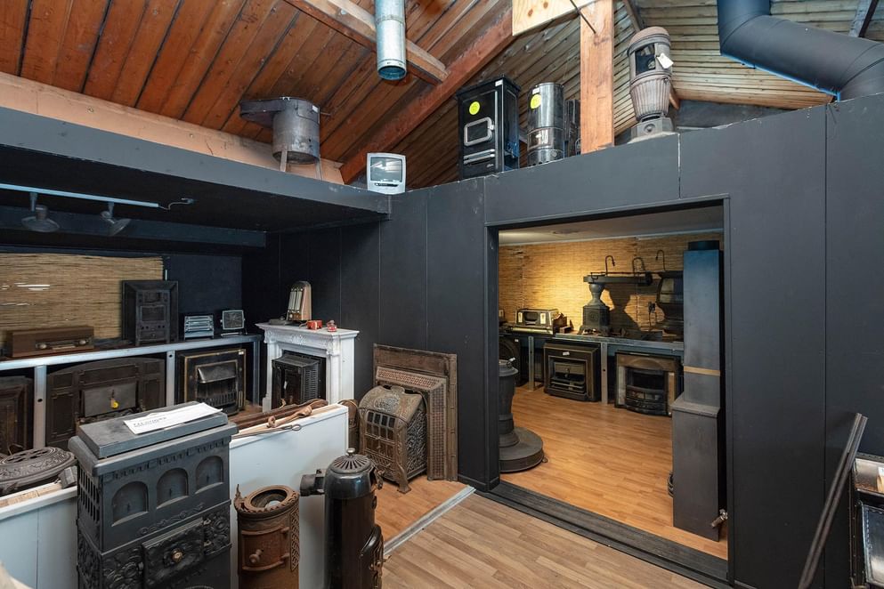 Middels vaste trap te bereiken showroom/bergruimte. Deze verdieping is thans in gebruik als kachelmuseum en was voorheen in gebruik als dienstwoning.