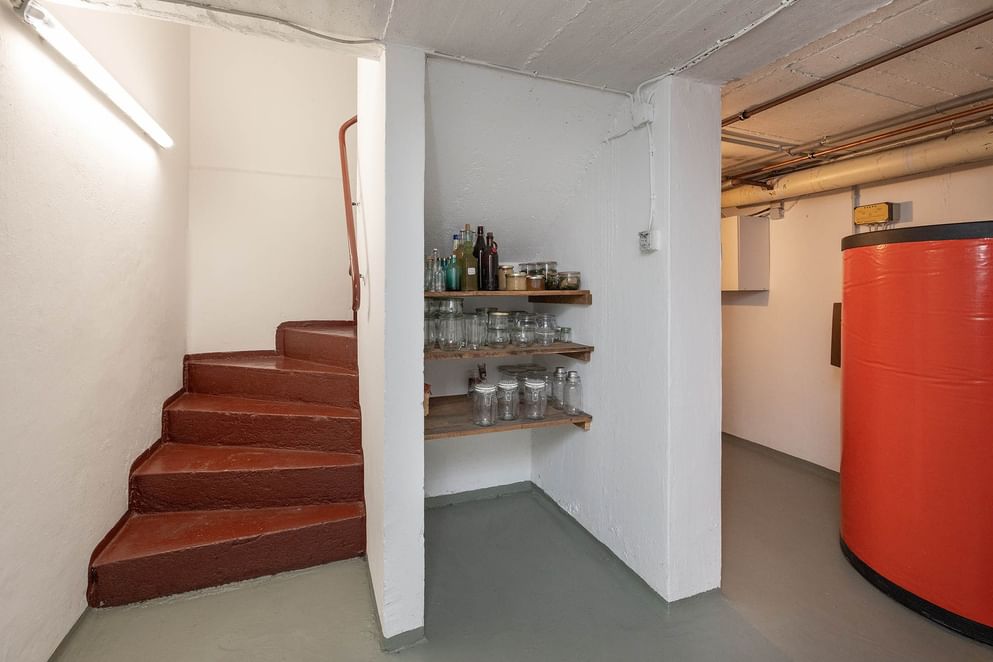 De kelder is bereikbaar via de trap in de entree en bestaat uit meerdere praktische ruimtes, waaronder een stookruimte en diverse provisiekamers – ideaal voor opslag, voorraad of hobbygebruik.