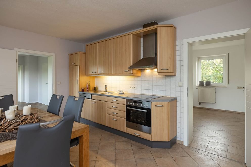 De ruime woonkeuken is uitgerust met diverse inbouwapparatuur en biedt voldoende plek voor een gezellige eethoek. Direct aansluitend bevindt zich een handige berging.