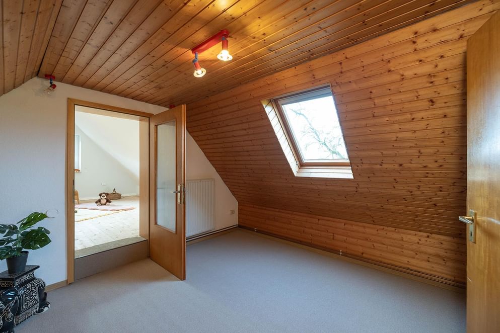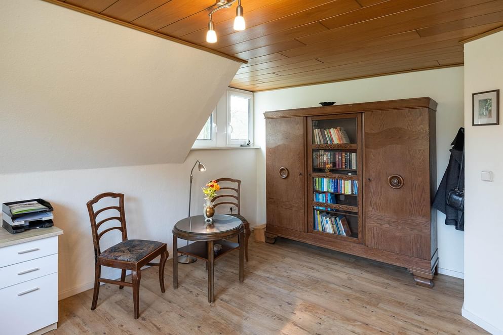Via een vlizotrap op de overloop is de bergzolder bereikbaar – praktisch voor het opbergen van seizoensspullen en overige zaken.