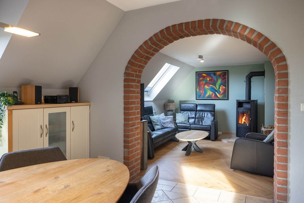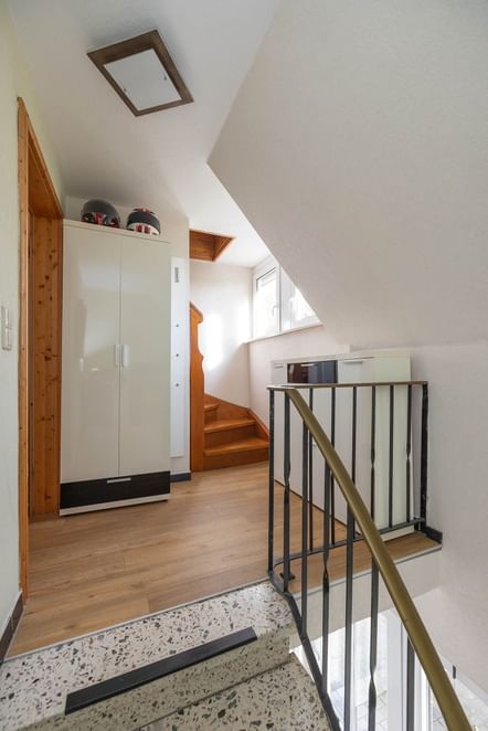 Via een tussendoor kun je de eerste verdieping van het woonhuis bereiken.