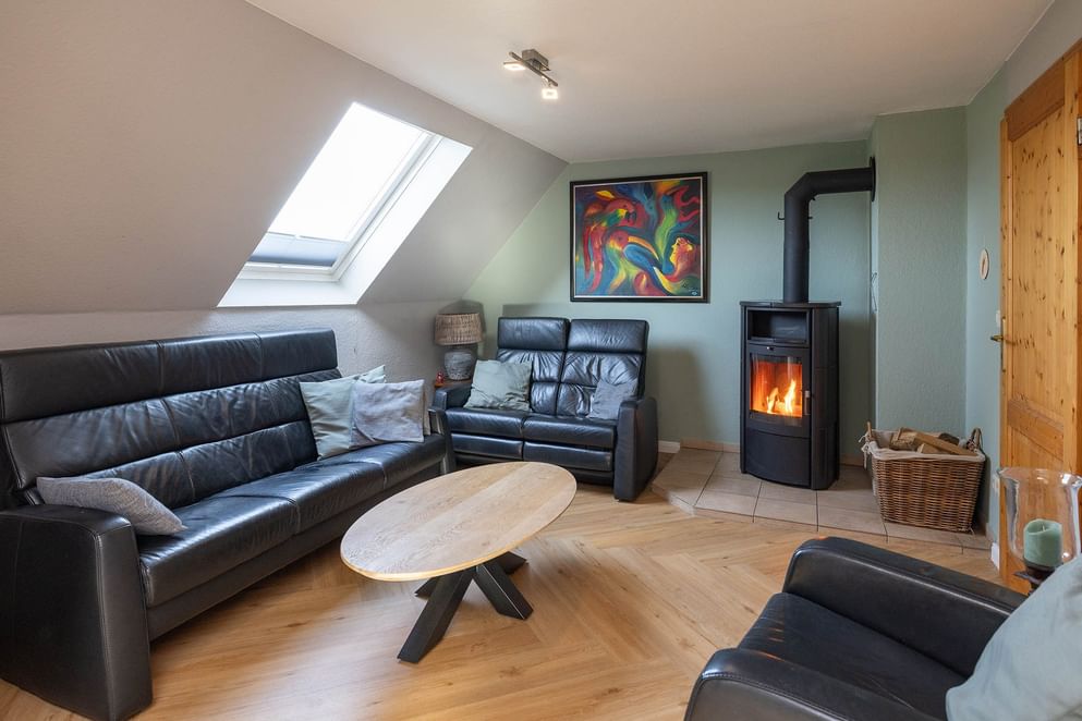 De lichte woonkamer is voorzien van grote raampartijen die zorgen voor een aangename hoeveelheid daglicht. Aangrenzend ligt een multifunctionele ruimte die uitstekend dienst kan doen als extra slaapkamer, kantoor of hobbykamer.
