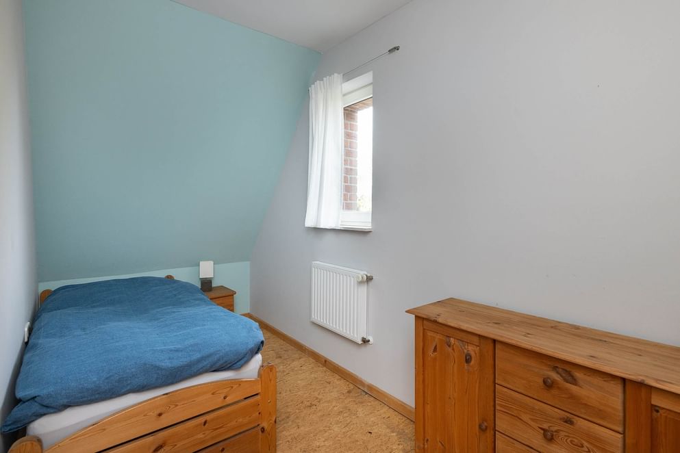 Ook de bovenste verdieping is verrassend ruim. Vanaf de overloop zijn twee slaapkamers bereikbaar, en via de middelste slaapkamer kom je in een derde kamer. Deze etage leent zich uitstekend voor het creëren van extra slaapvertrekken, een hobbyruimte of een rustige logeerkamer.