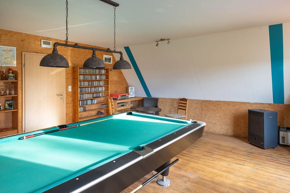 Via de vaste trap kom je aan op een overloop met toegang tot wederom een multifunctionele ruimte, perfect als speelkamer, creatieve werkplek of feestruimte. De eerste verdieping voorziet ook nog over twee slaapkamers die je kunt bereiken via een hal met een dakraam.