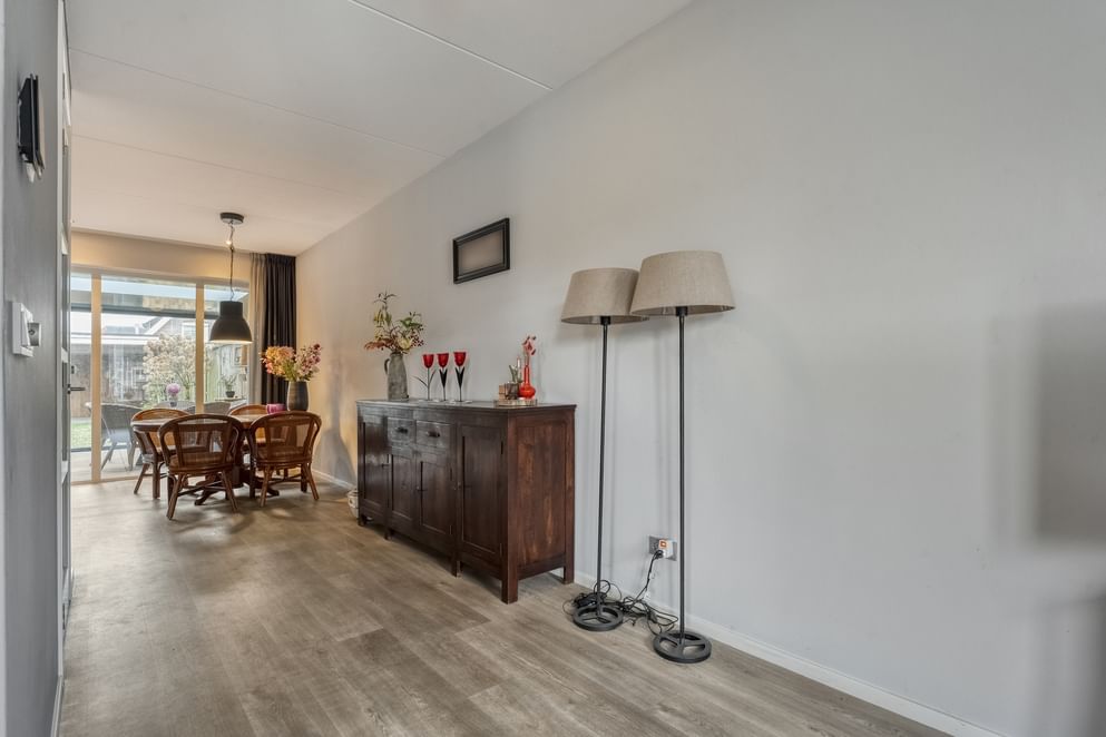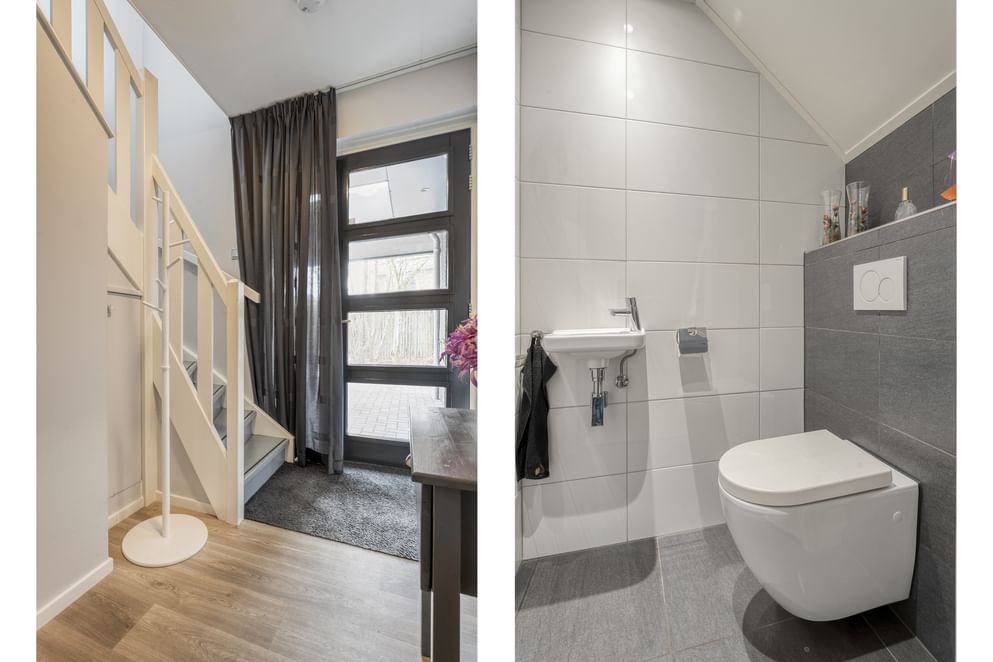 Via de ruime entree betreed je de woning. Vanuit hier zijn de trapopgang, het toilet en de toegang tot de verschillende vertrekken bereikbaar. De woonkamer bevindt zich aan de voorzijde van de woning en beschikt over veel raampartijen, wat zorgt voor een prettige en ruime lichtinval. De woning beschikt over een open keuken, uitgerust met diverse inbouwapparatuur, waaronder een inductiekookplaat. Vanuit de keuken loop je door naar de badkamer en de slaapkamer, die zich aan de achterzijde van de woning bevinden. De badkamer is ingericht met een douche, wastafel en een tweede toilet op de begane grond. Via de keuken is tevens de bijkeuken bereikbaar, welke ook een eigen toegang heeft vanaf de oprit. Deze ruimte is uitermate geschikt voor het stallen van fietsen of het opbergen van diverse spullen. Aansluitend aan de keuken bevindt zich de serre, waar je zowel in de zomer als in de winter kunt genieten van licht en frisse lucht.